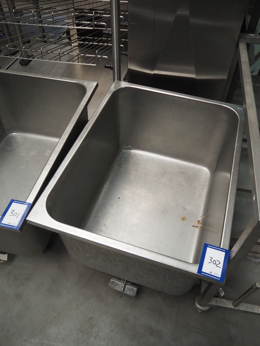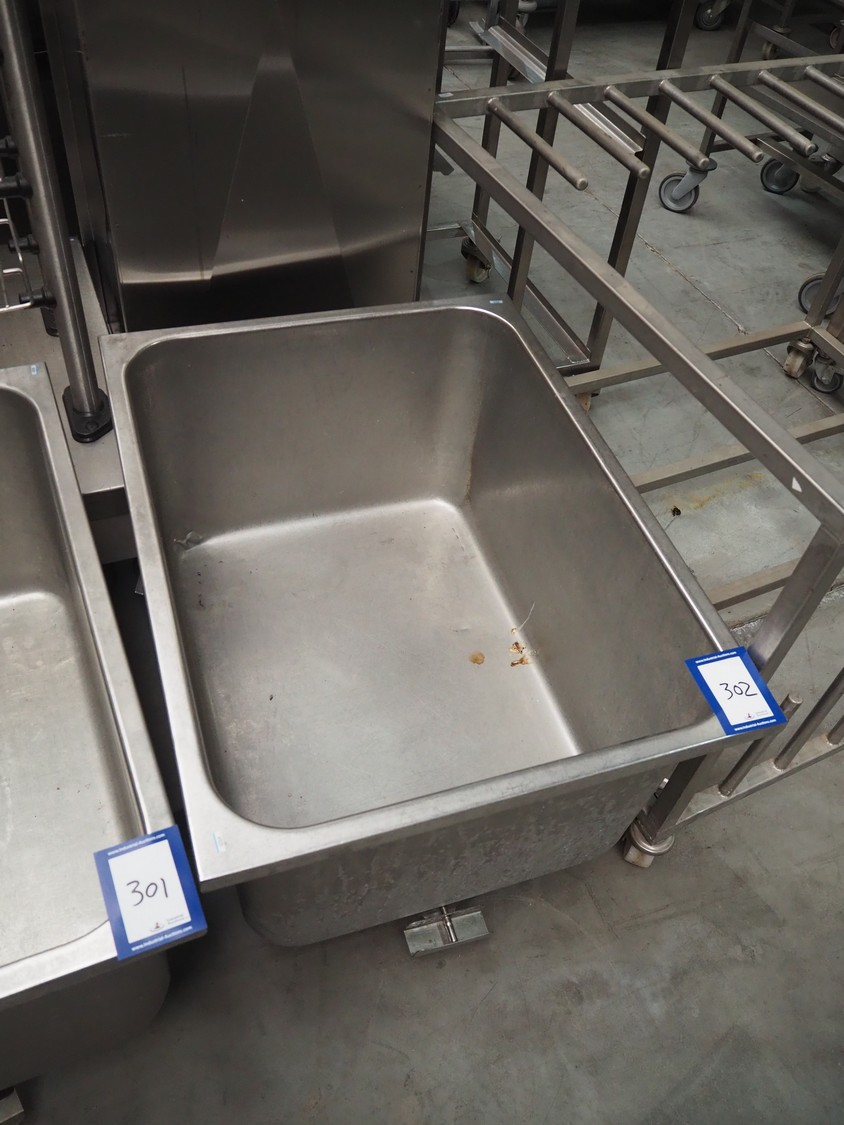 S/s tub, inside dimensions: 750 mm x 560 mm x 400 mm, total dimensions: 810 mm x 620 mm x 550 mm.