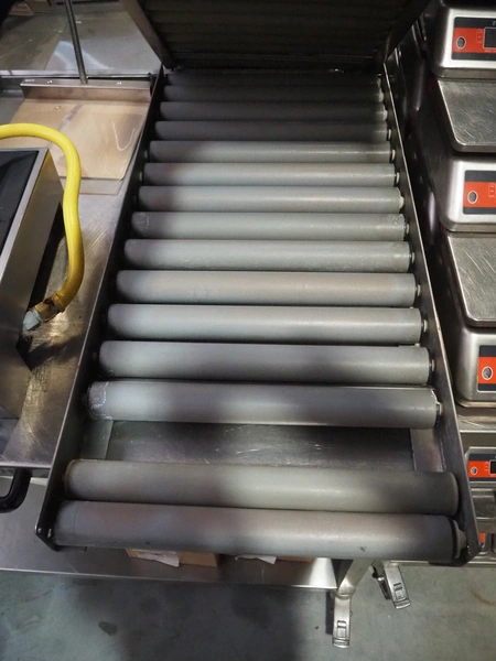 Plastic roller conveyors, roller width: 450 mm, total dimensions: (2x) 980 mm x 480 mm x 60 mm. Missing rollers.