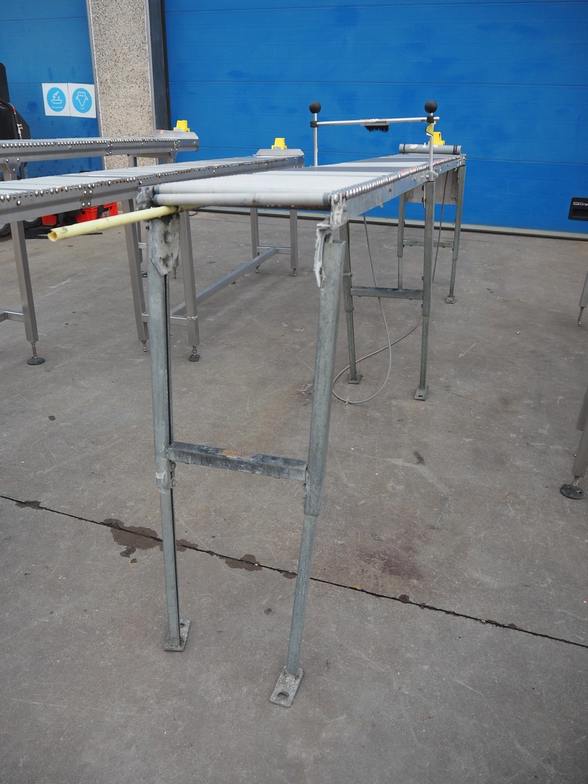 Prominox nv. s/s roller conveyor, plastic rollers, roller width: 335 mm, total dimensions: 3750 mm x 450 mm x 1200 mm.