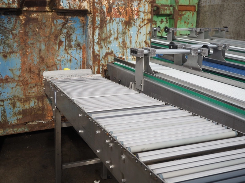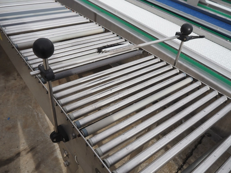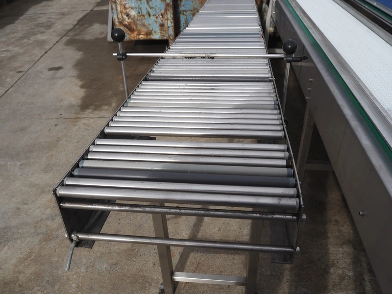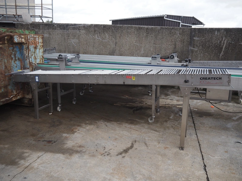 Createch roller conveyor, s/s rollers, roller width: 420 mm, total dimensions: 3650 mm x 550 mm x 1220 mm. Missing rollers.