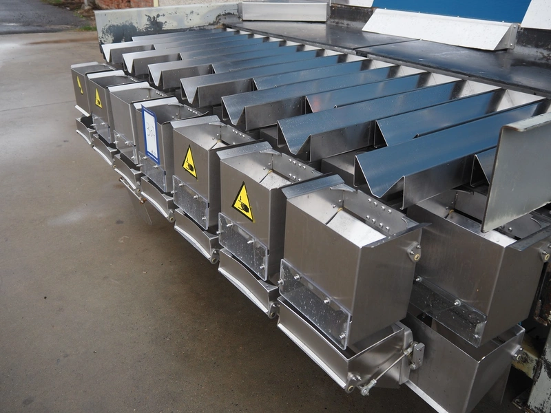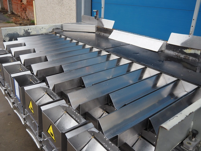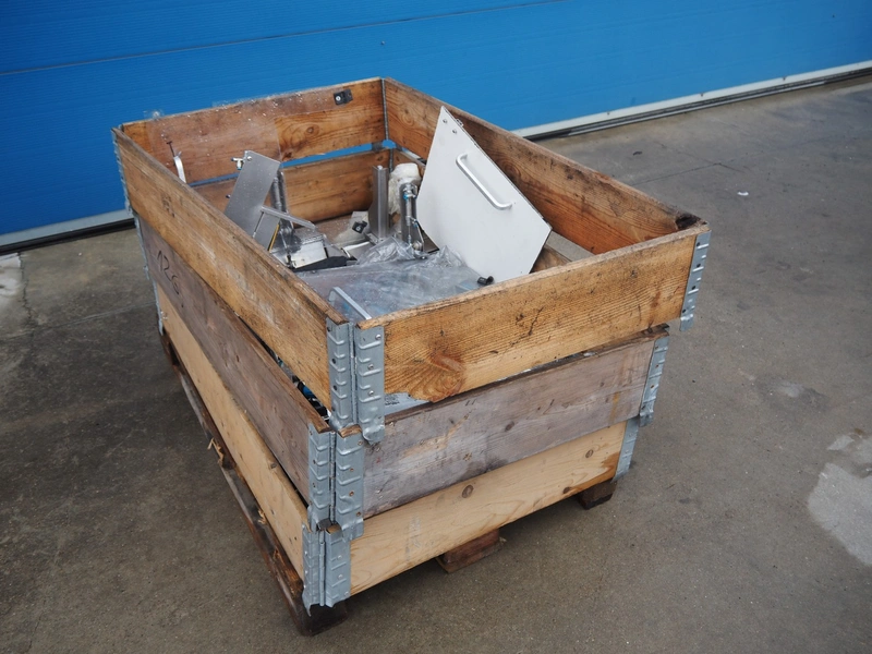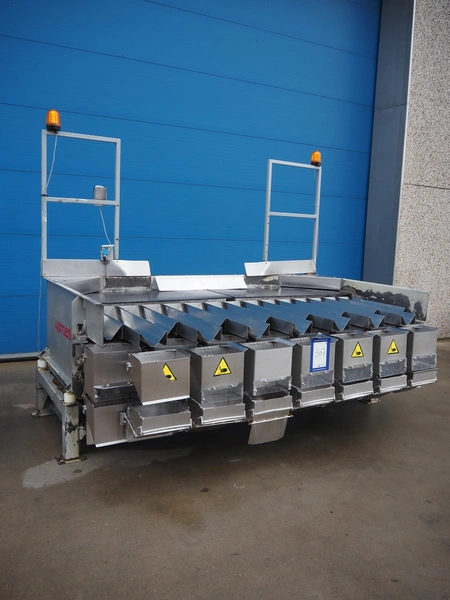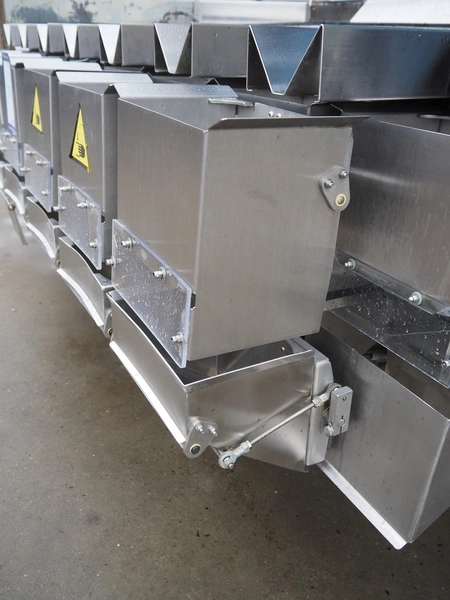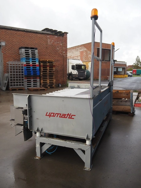 Upmann Verpackungsmaschinen 7 heads lineair weigher, model: Upmatic, dimension each head: 245 mm x 160 mm, total dimensions: 2500 mm x 1530 mm x 2120 mm and Upmann Verpackungsmaschinen infeed bunker, infeed width: 2530 mm x 410 mm, total dimensions infeed bunker: 3190 mm x 870 mm x 670 mm. Including pallet box with parts.