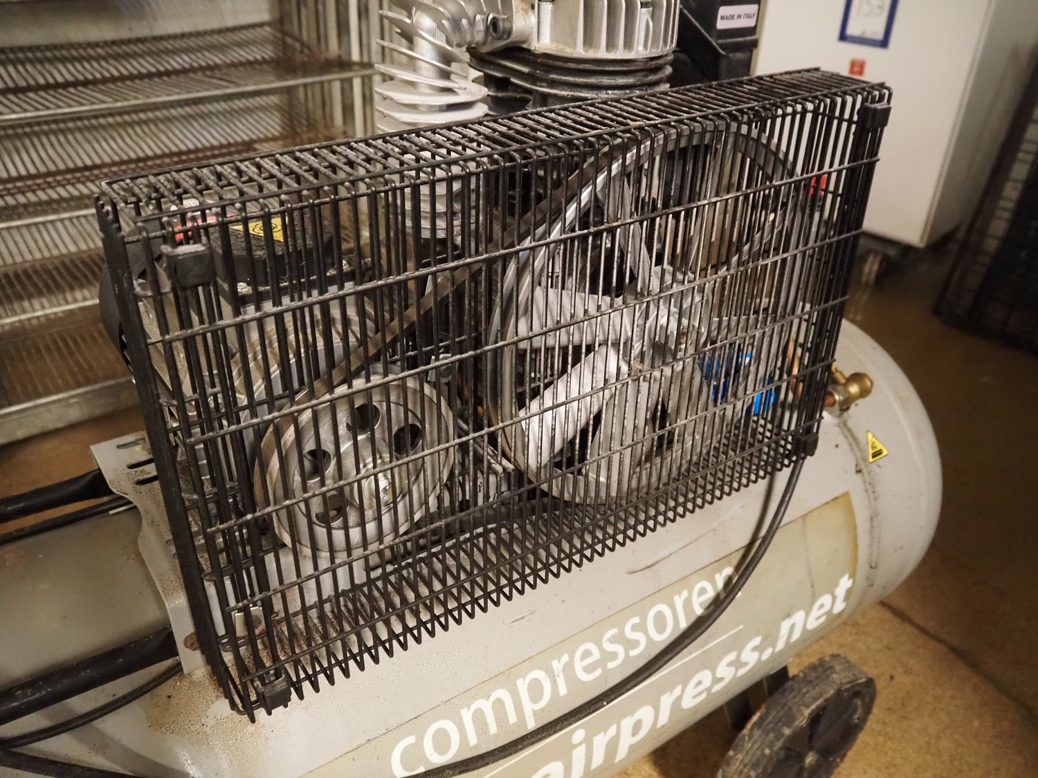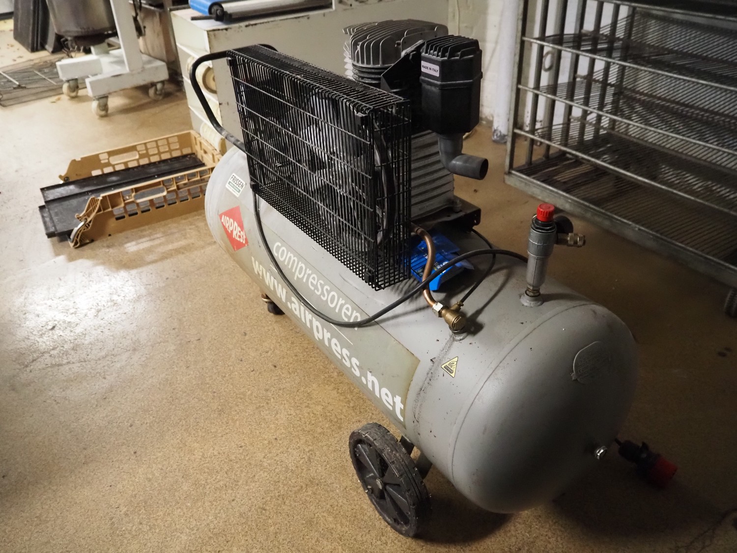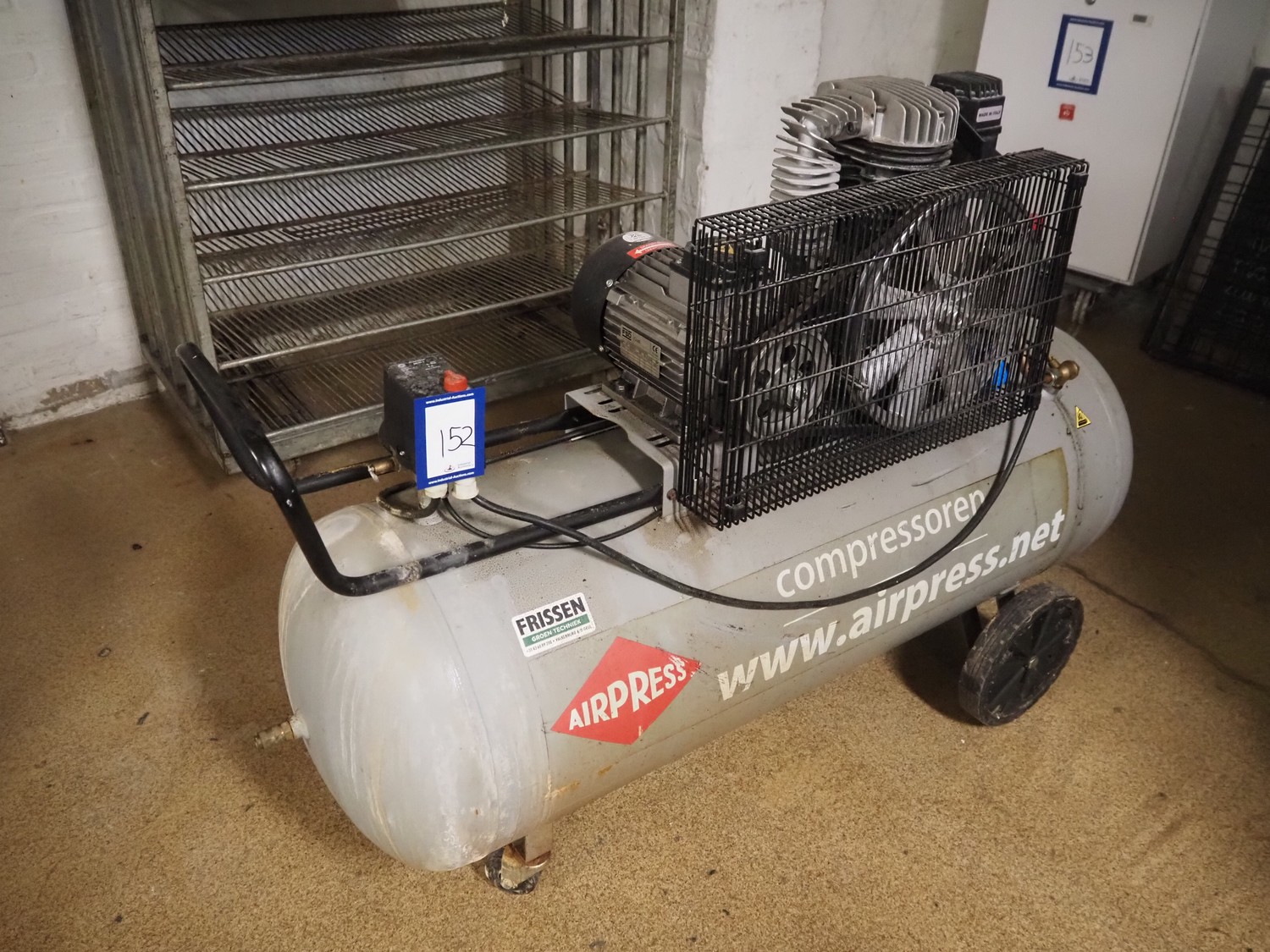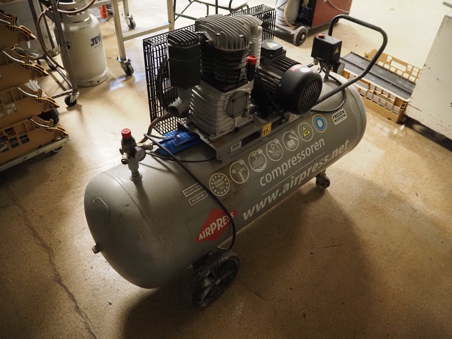 Airpress mobile air compressor, volume: 200 liter, dimensions: 1350 mm x 450 mm x 1000 mm.
