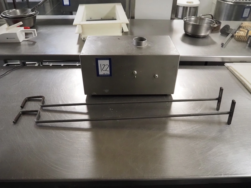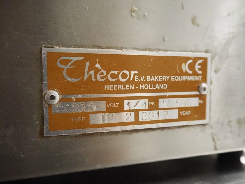 Ehecor B.V. Bakery Equipment bread rolls machine, type: TPB 2, number: 15598, year of construction: 2012, 230 V, 1/4 Ps, infeed: Ø 60 mm, cloth belt, belt width: 180 mm, total dimensions: 480 mm x 280 mm x 270 mm.