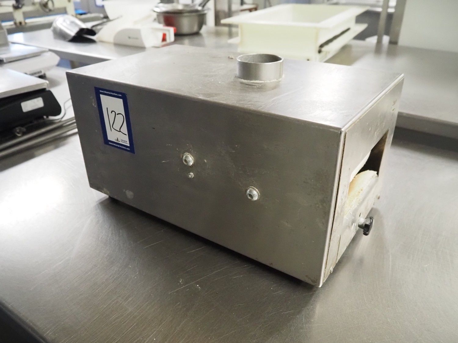 Ehecor B.V. Bakery Equipment bread rolls machine, type: TPB 2, number: 15598, year of construction: 2012, 230 V, 1/4 Ps, infeed: Ø 60 mm, cloth belt, belt width: 180 mm, total dimensions: 480 mm x 280 mm x 270 mm.