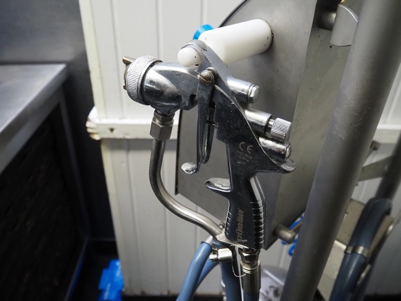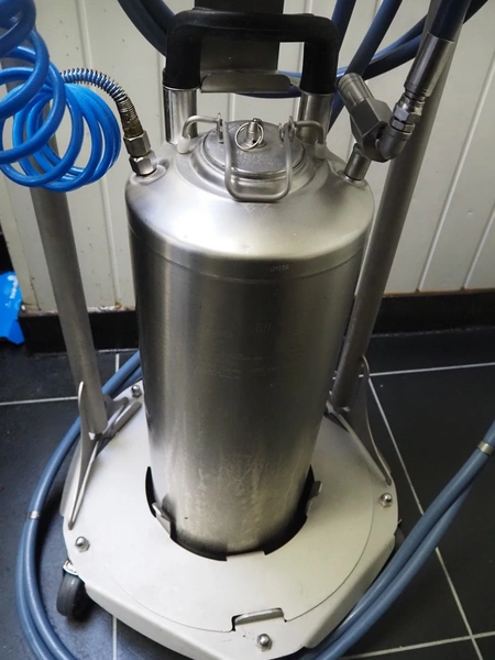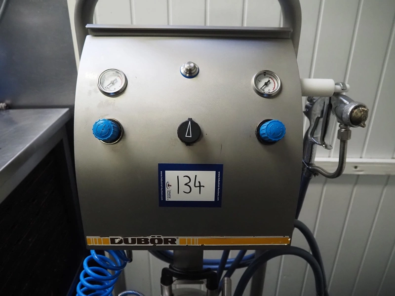 Dubör oil spraying machine, tank dimensions: Ø 200 mm x 550 mm, total dimensions: 470 mm x 570 mm x 1430 mm.