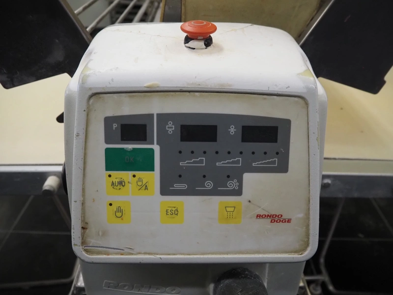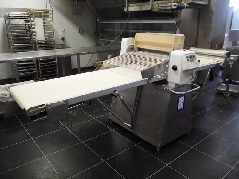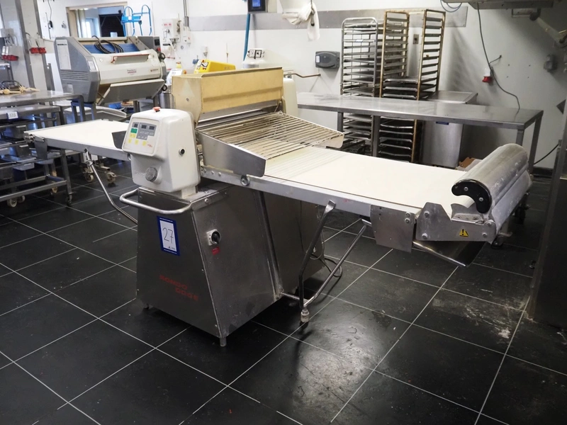Rondo Doge mobile dough sheeter, cloth belt, belt width: (2x) 600 mm, roller width: 390 mm, total dimensions: 3250 mm x 1160 mm x 1320 mm.