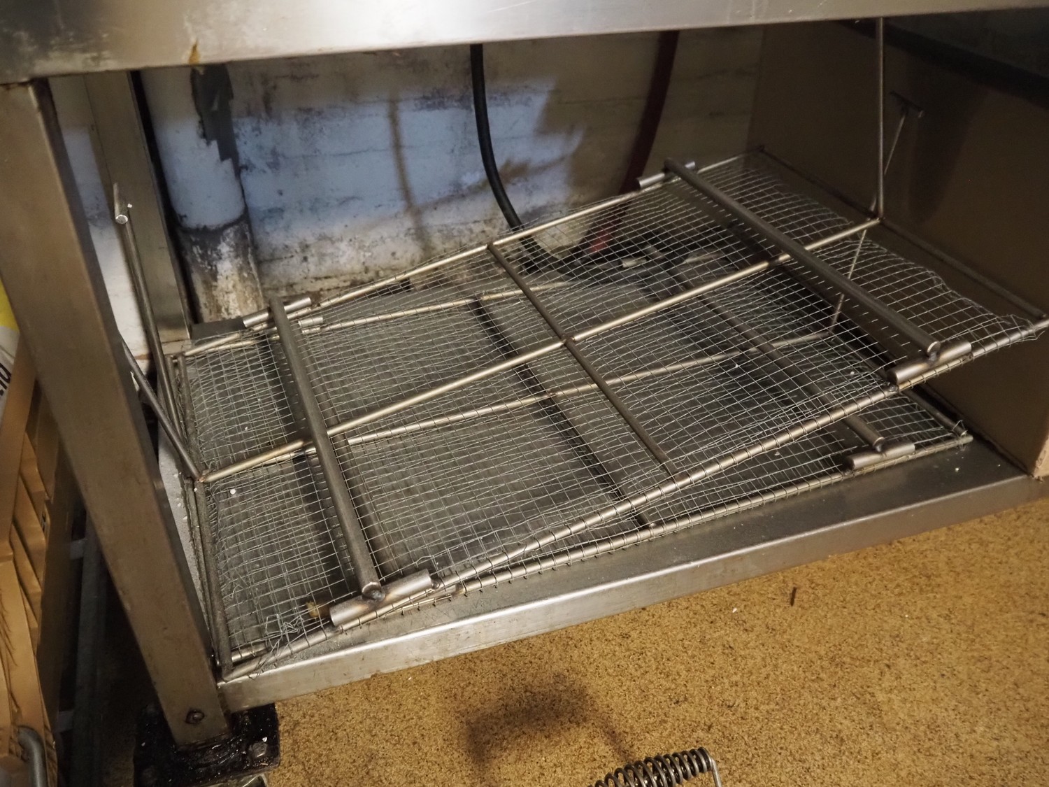 S/s mobile double chamber doughnut fryer, inside dimensions: (2x) 760 mm x 460 mm, total dimensions: 1760 mm x 630 mm x 1000 mm.