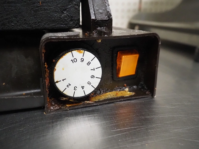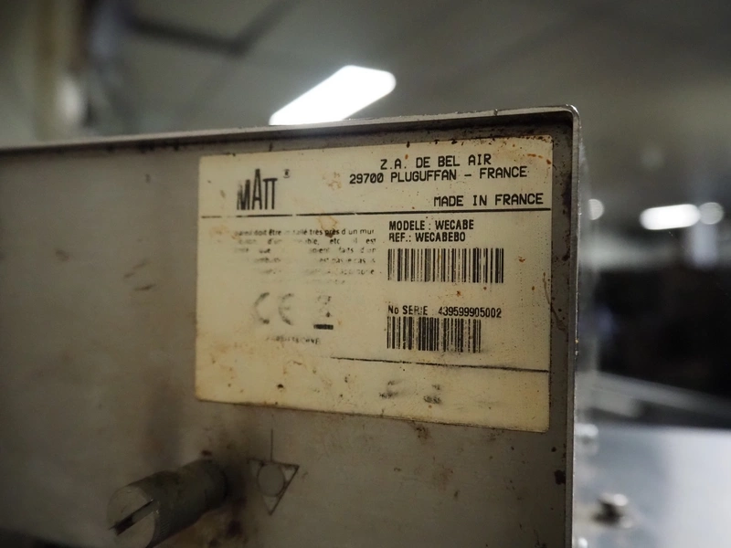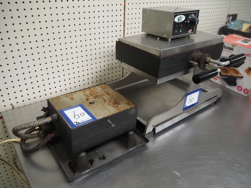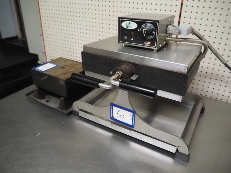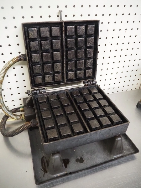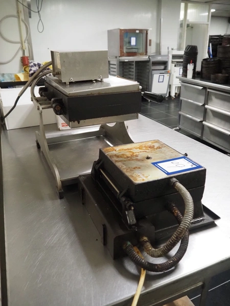 Matt waffle maker, model: WECABE, serial number: 439599905002, dimensions dye: 370 mm x 230 mm, total dimensions: 500 mm x 450 mm x 420 mm. Including extra dye, dimensions dye: 215 mm x 180 mm.
