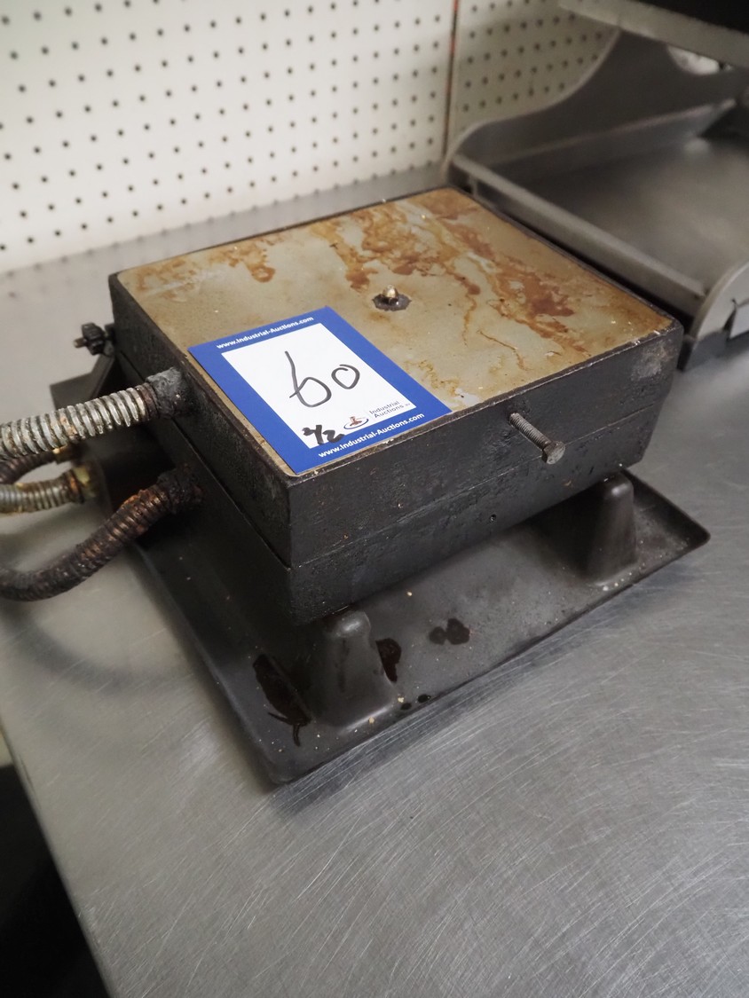 Matt waffle maker, model: WECABE, serial number: 439599905002, dimensions dye: 370 mm x 230 mm, total dimensions: 500 mm x 450 mm x 420 mm. Including extra dye, dimensions dye: 215 mm x 180 mm.