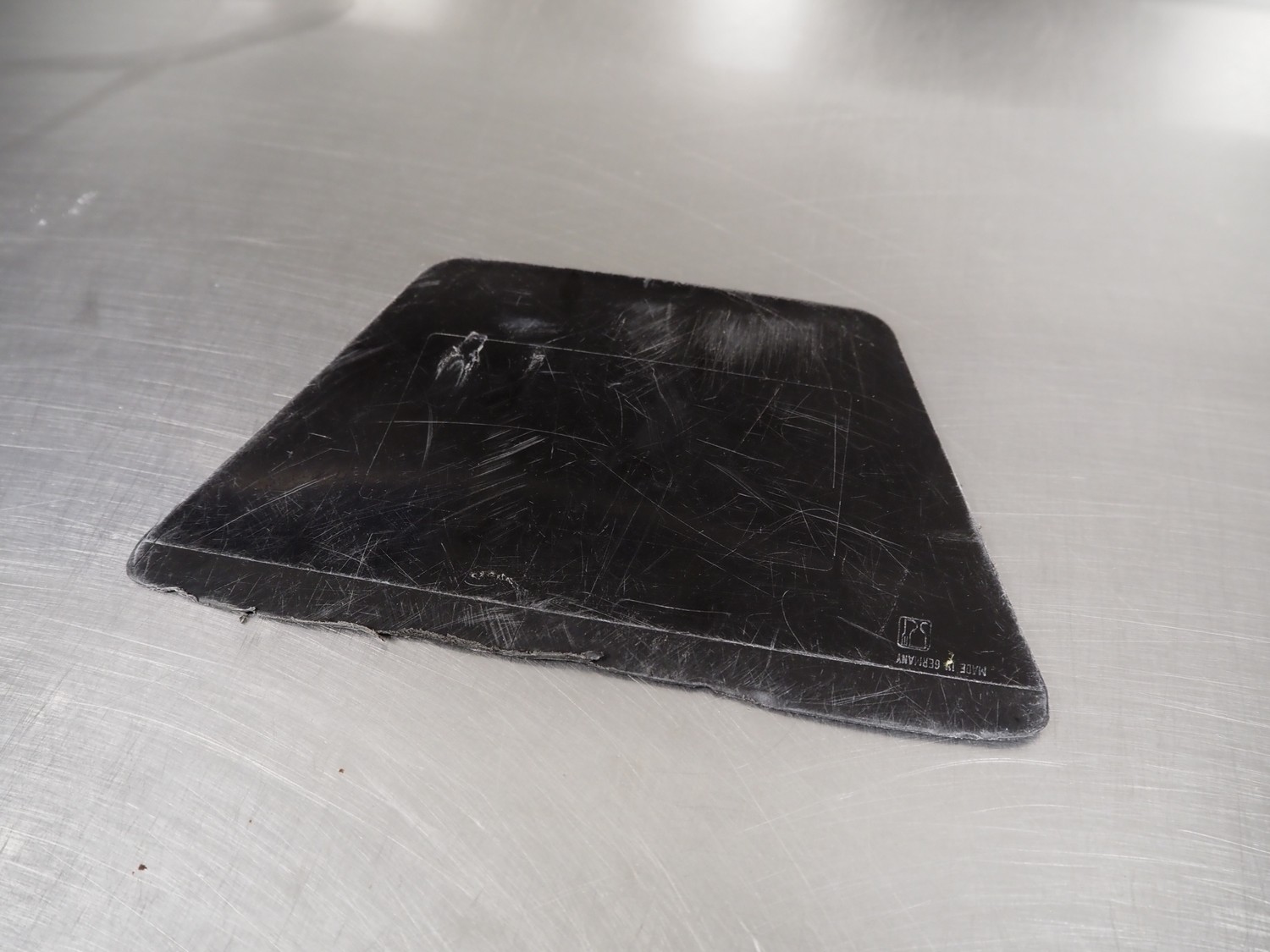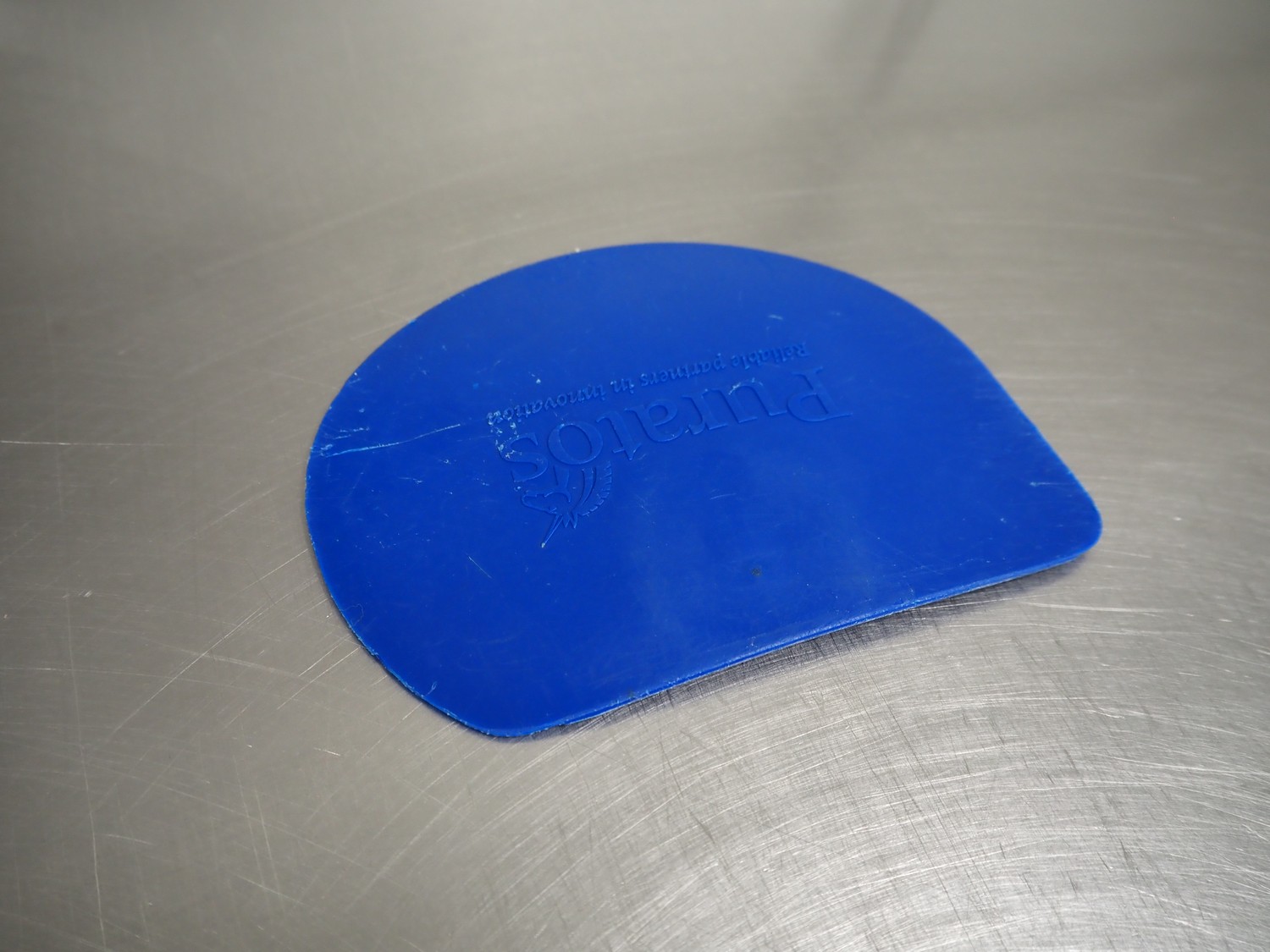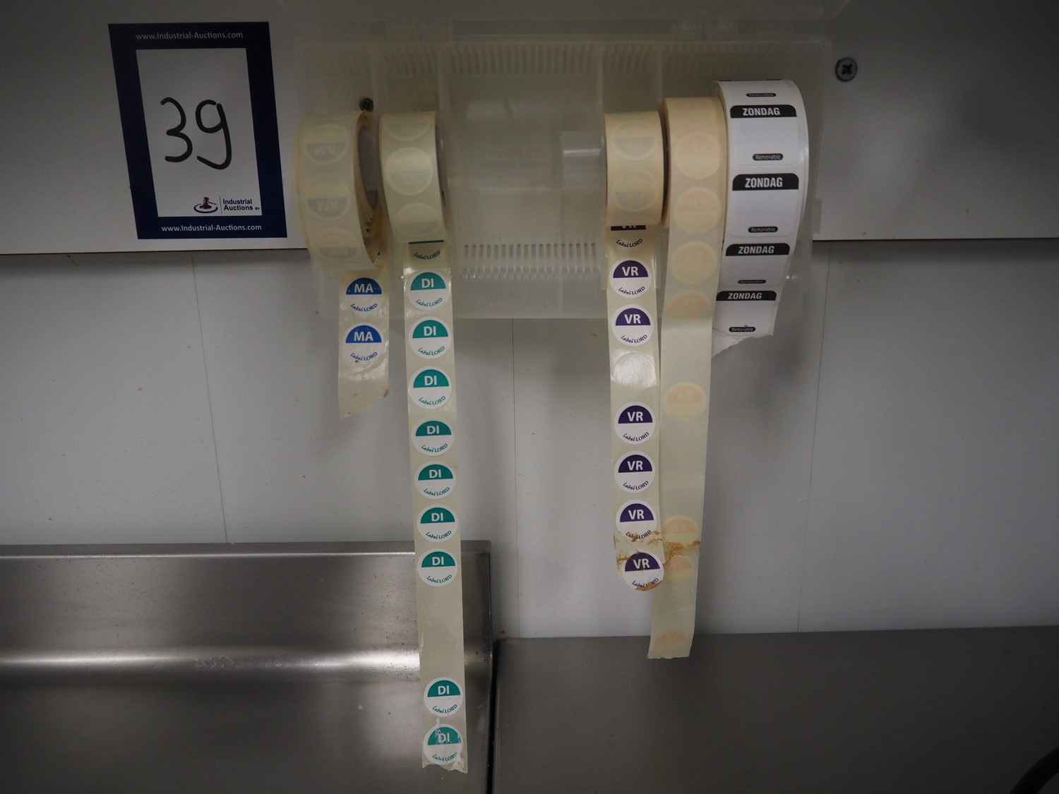 s/s wall mounted frame with dough scrapers, dimensions: 185 mm x 500 mm x 130 mm. Including holder for date labels.