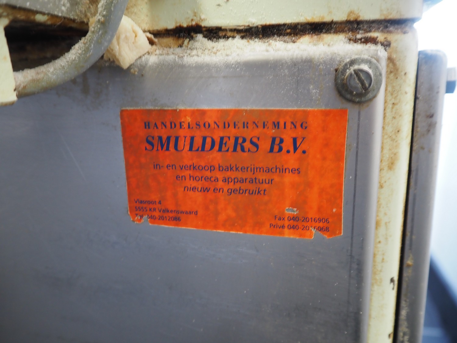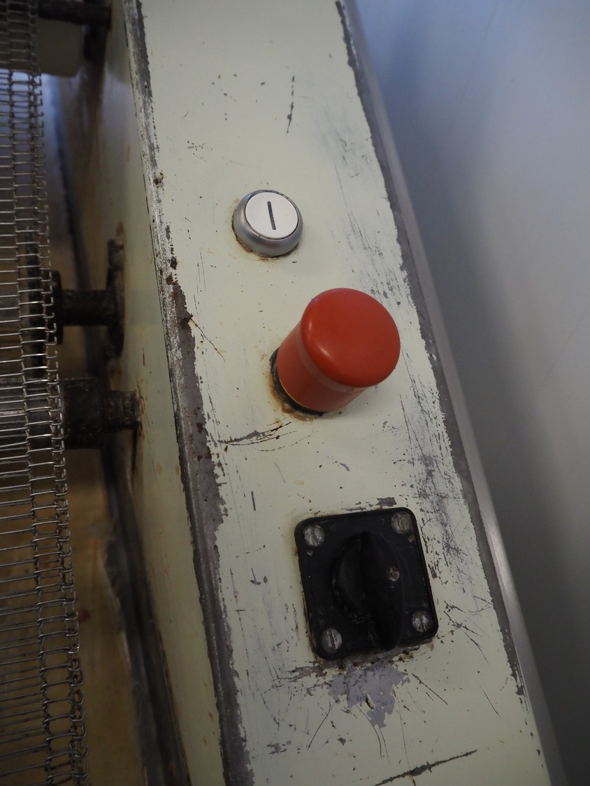 Mobile dough lattice machine, plastic belt, belt width: 370 mm, s/s mesh belt width: 370 mm, roller width: 390 mm, total dimensions: 2200 mm x 630 mm x 1240 mm.
