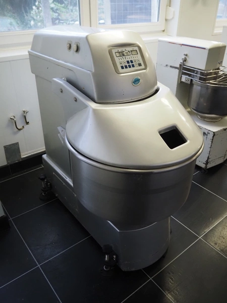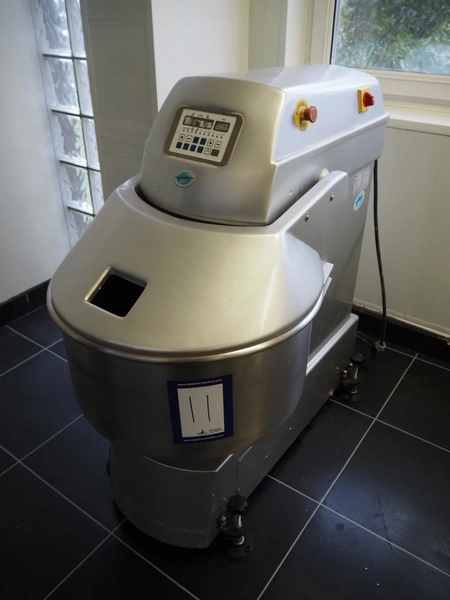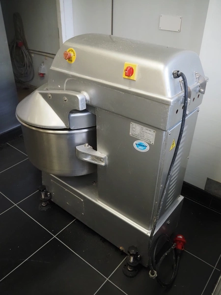 Sinmag Bakery Equipment spiral mixer, model: KM-80T, serial number: 1008049, year of construction: 2011.01, 380 V, 3 Ph, 50 Hz, 12.3 A, 5.25 kW, machine weight: 390 kg, s/s bowl, bowl dimensions: Ø 670 mm x 380 mm, total dimensions: 1250 mm x 700 mm x 1300 mm.
