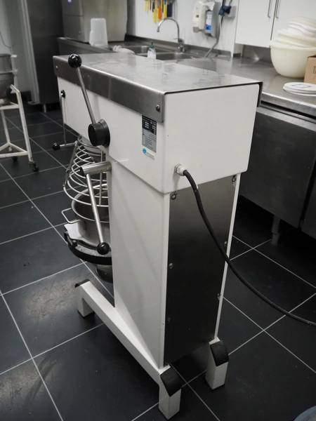 A/S Wodschow & Co. mixer, model: AR30/VL1, machine number: 30006247, year of construction: 2017, 400 V, 3 Ph, 50 Hz, 2.7 A, 1.0 kW, volume: 30 liter, s/s bowl, bowl dimensions: Ø 350 mm x 350 mm, total dimensions: 850 mm x 460 mm x 1250 mm. Including extra s/s bowl and trolley.