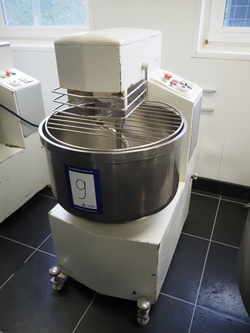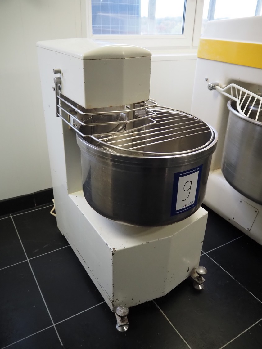 Mobile mixer, model: 60-FA, number: 946, 380 V, 50 Hz, s/s bowl, volume: 60 liter, bowl dimensions: Ø 580 mm x 350 mm, total dimensions: 900 mm x 610 mm x 1220 mm.