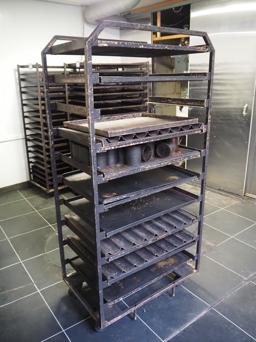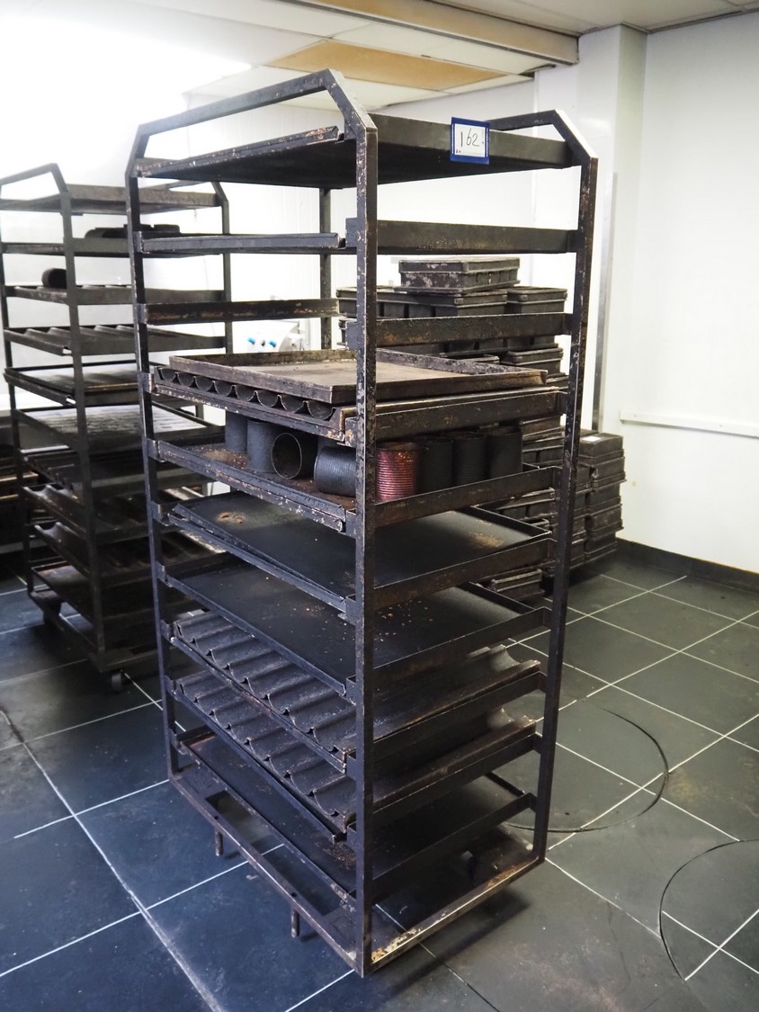 2 trolleys with plates, 10 floors, floor dimensions: (10x) 800 mm x 570 mm, total dimensions: (2x) 940 mm x 600 mm x 1910 mm.