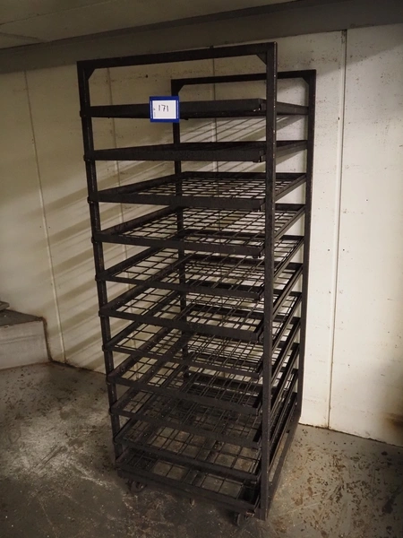 Trolley with plates, 11 floors, floor dimensions: (11x) 790 mm x 590 mm, total dimensions: 810 mm x 670 mm x 1760 mm.