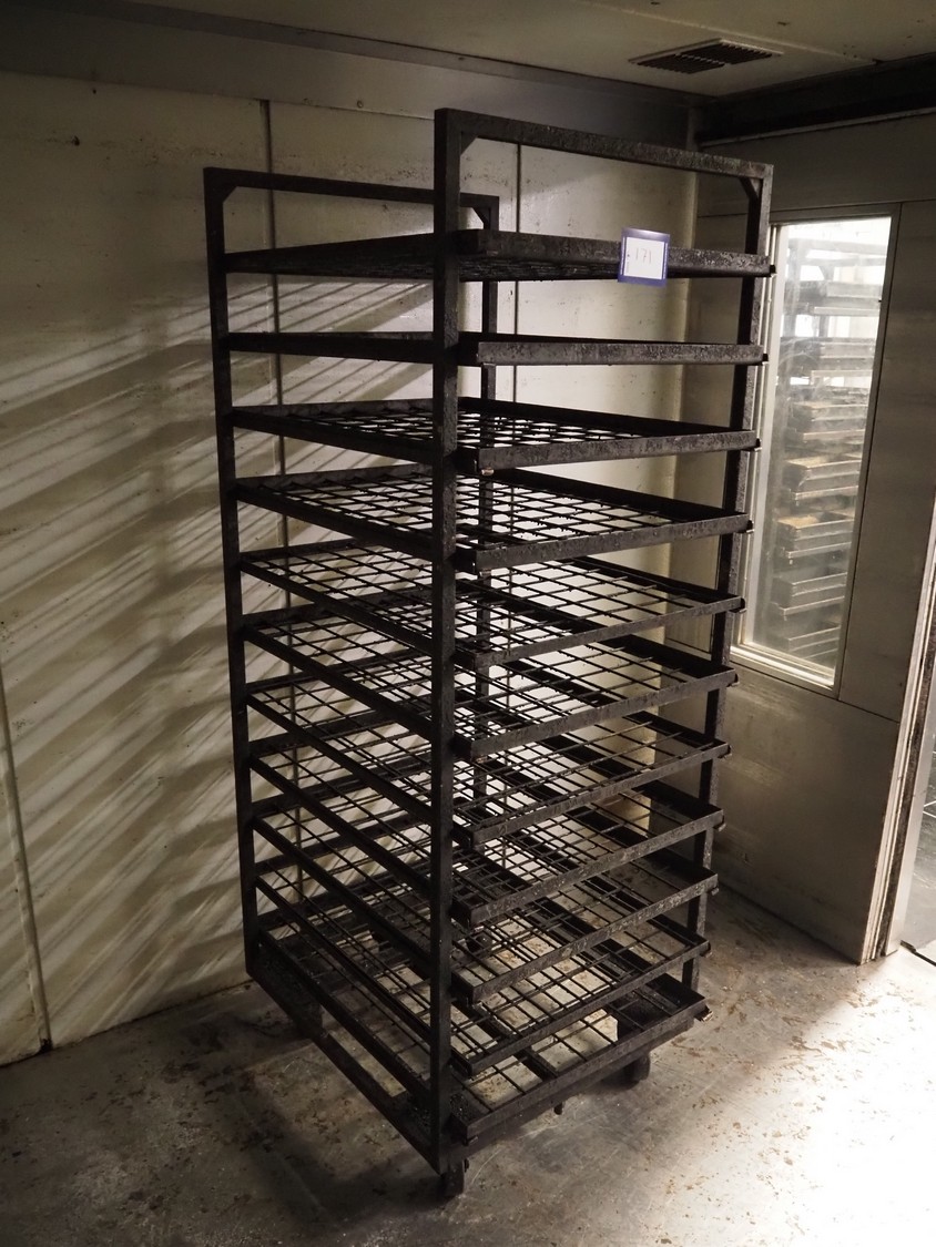Trolley with plates, 11 floors, floor dimensions: (11x) 790 mm x 590 mm, total dimensions: 810 mm x 670 mm x 1760 mm.
