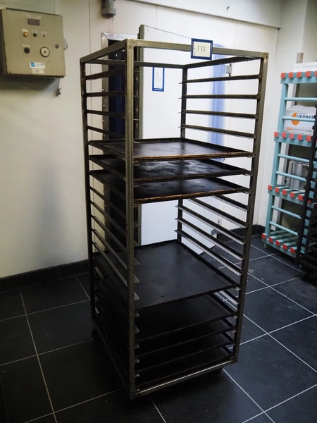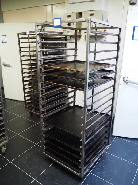 2 trolleys with plates, 18 floors, floor dimensions: (18x) 700 mm x 600 mm, total dimensions: (2x) 740 mm x 660 mm x 1760 mm.
