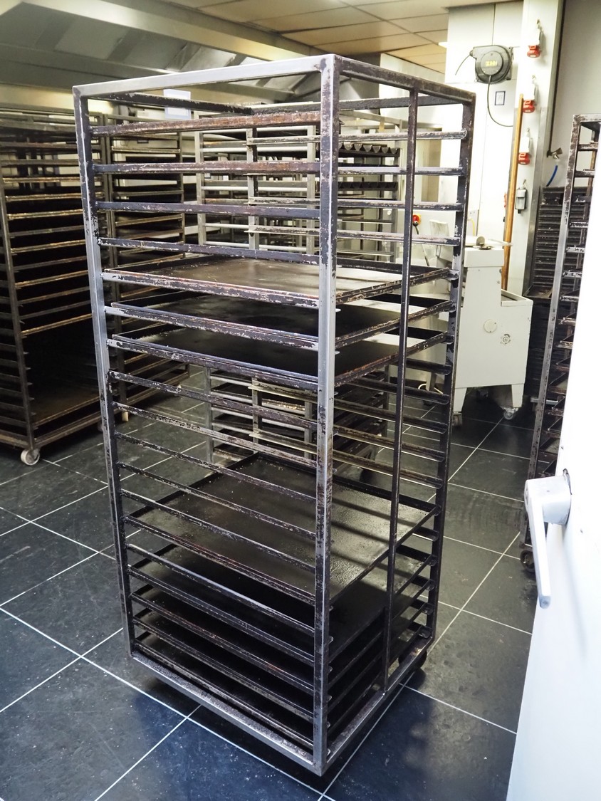 2 trolleys with plates, 18 floors, floor dimensions: (18x) 700 mm x 600 mm, total dimensions: (2x) 740 mm x 660 mm x 1760 mm.