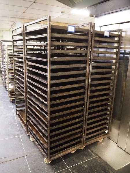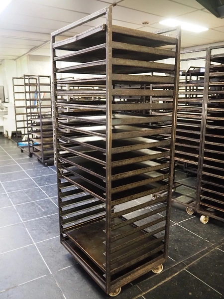 4 trolleys with plates, 20 floors, floor dimensions: (20x) 700 mm x 600 mm, total dimensions: (4x) 760 mm x 600 mm x 1910 mm.