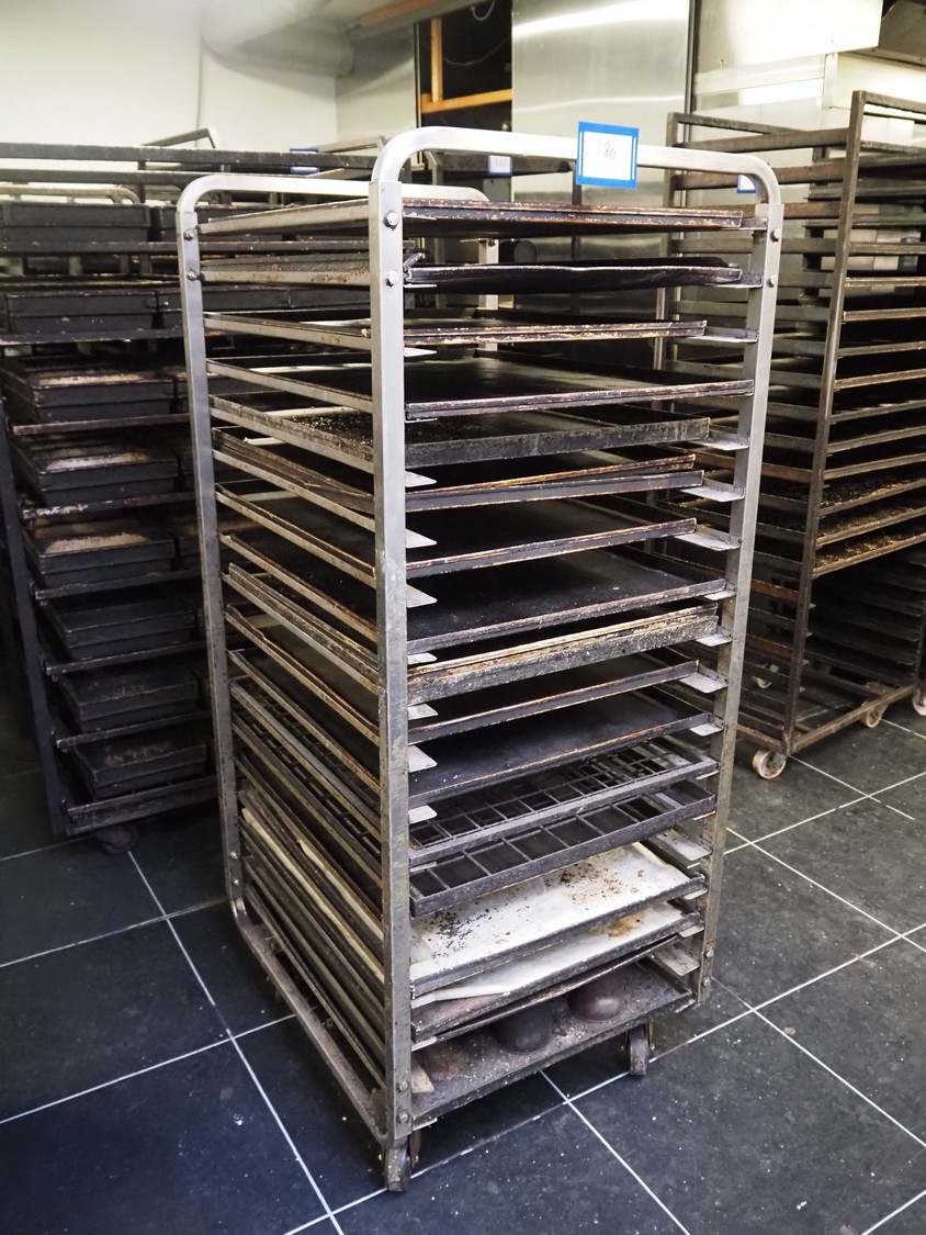 Trolley with plates, 17 floors, floor dimensions: (17x) 800 mm x 600 mm, total dimensions: 800 mm x 670 mm x 1660 mm.