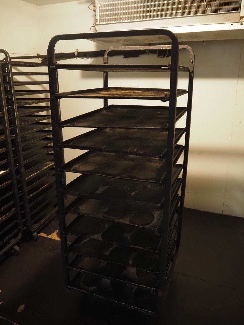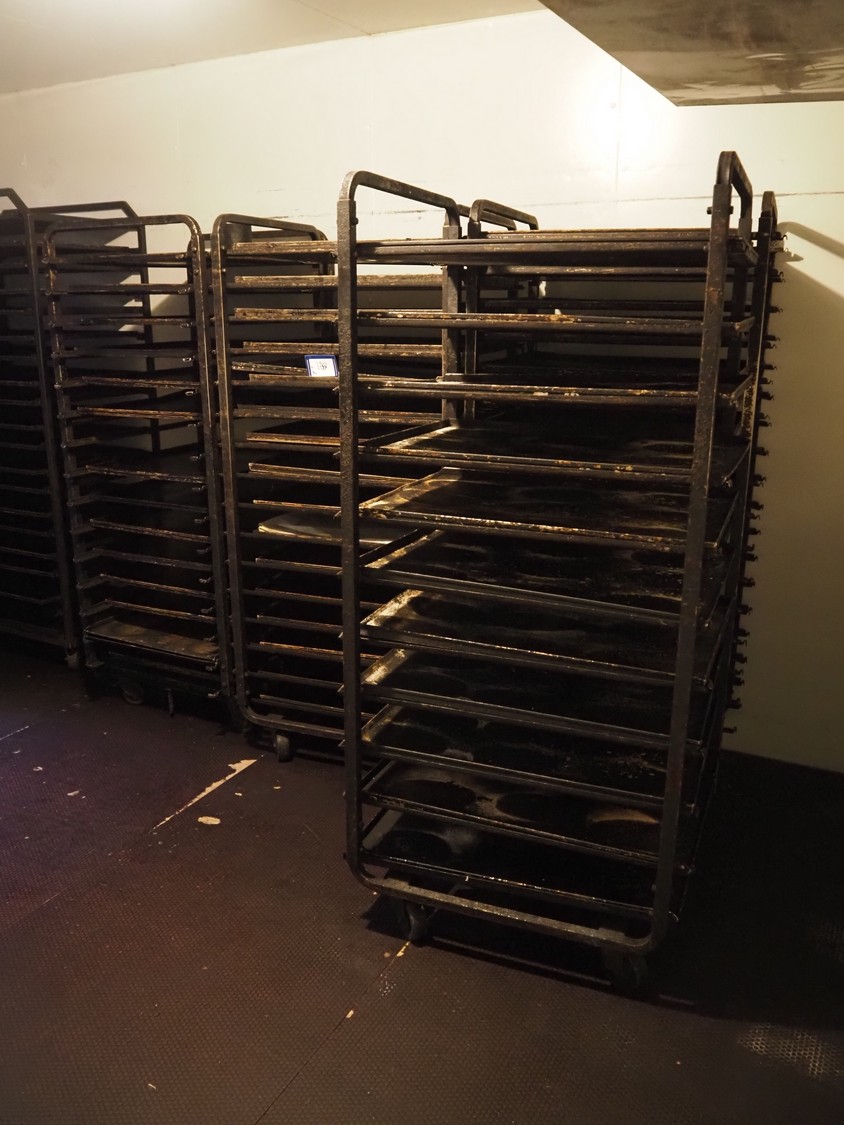 4 trolleys with plates, 18 floors, floor dimensions: (18x) 780 mm x 600 mm, total dimensions: (4x) 820 mm x 670 mm x 1760 mm.