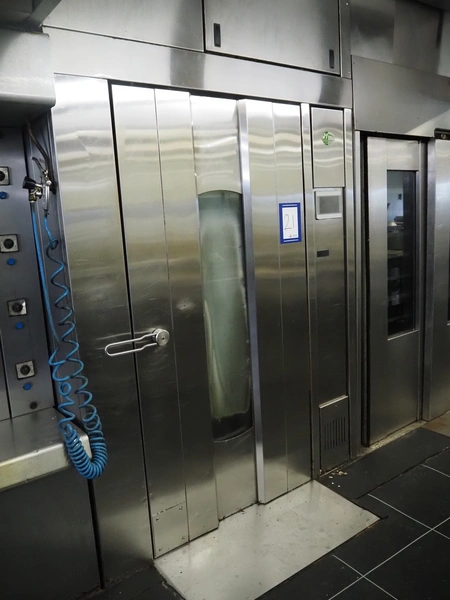 Hebaco rotary oven, turning device: Ø 1050 mm, height: 1980 mm, inside dimensions: 1250 mm x 1140 mm x 2000 mm, total dimensions: 2200 mm x 1620 mm x 2660 mm.
