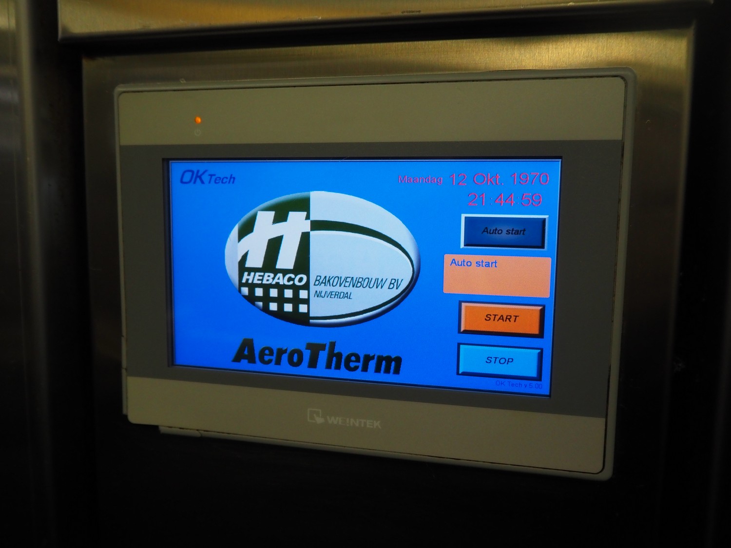 Hebaco rotary oven, turning device: Ø 1050 mm, height: 1980 mm, inside dimensions: 1250 mm x 1140 mm x 2000 mm, total dimensions: 2200 mm x 1620 mm x 2660 mm.
