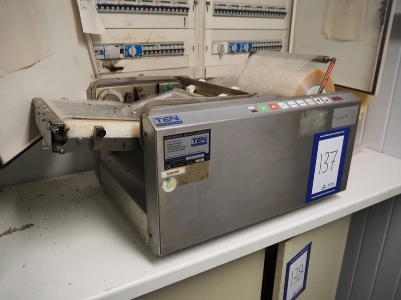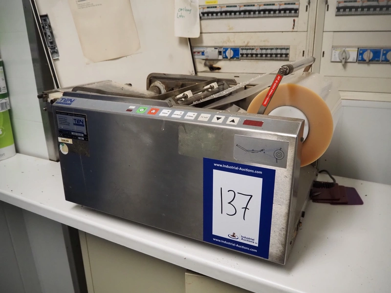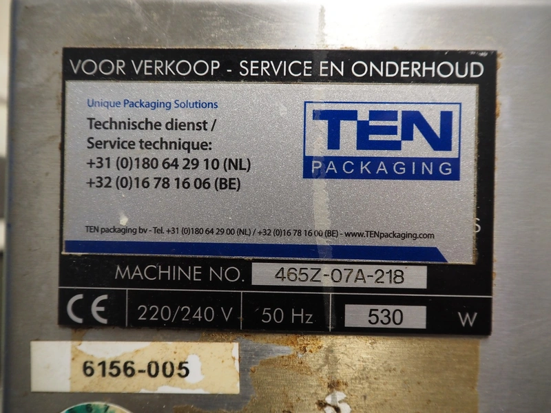 TEN Packaging packing machine, machine number: 465Z-07A-218, 220/240 V, 50 Hz, 530 W, seal length: 220 mm x 170 mm, film width: 245 mm, total dimensions: 650 mm x 490 mm x 420 mm.