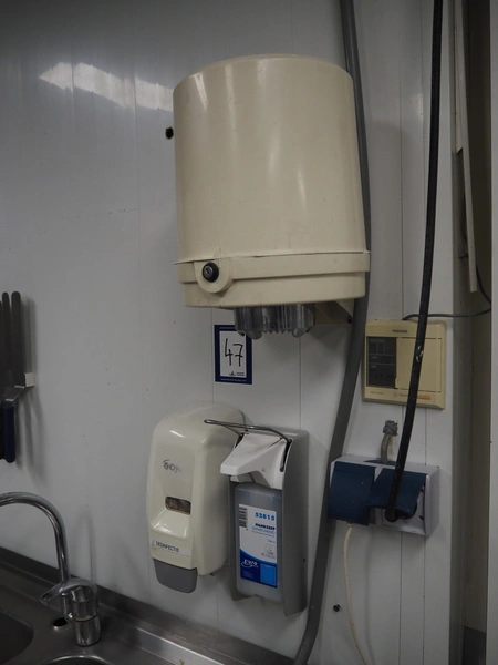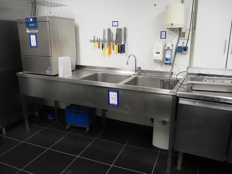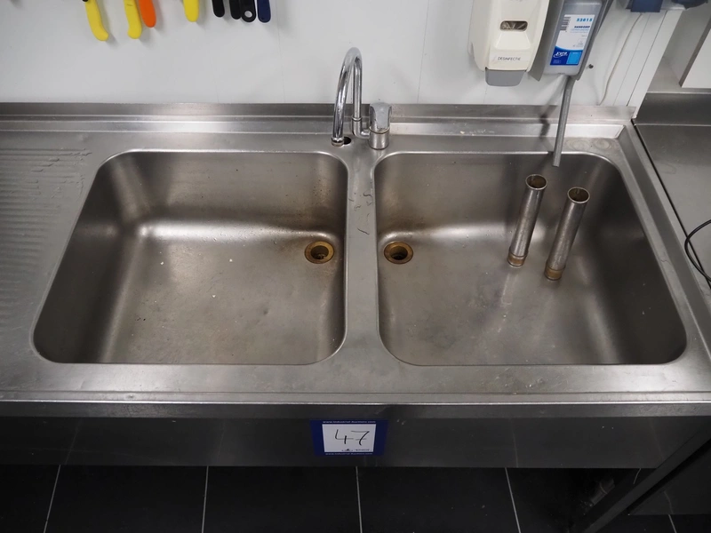 Wagner Ewar s/s doulbe sink with faucet, dimensions: 2400 mm x 800 mm x 1300 mm. Including soap and paper dispenser.