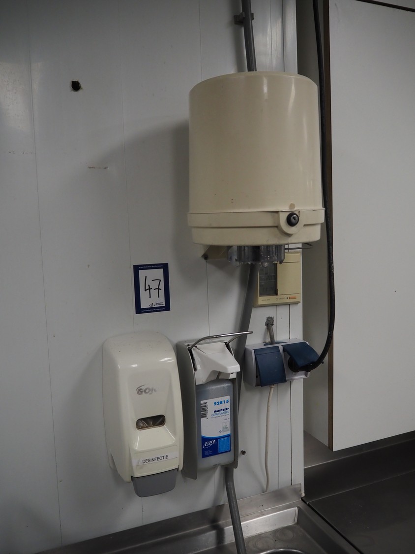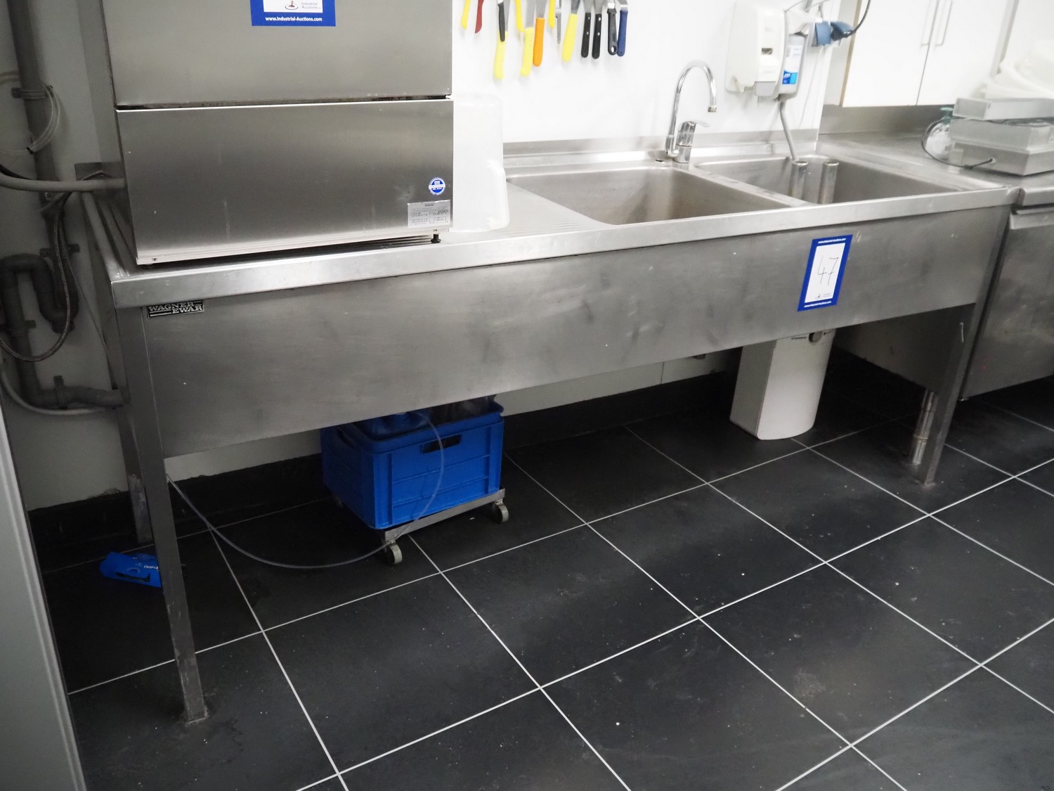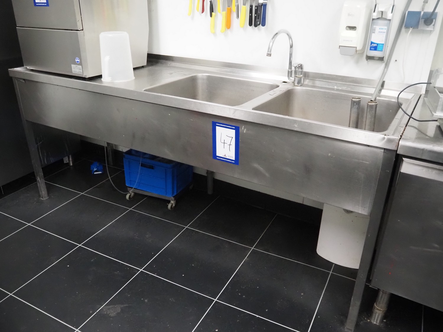 Wagner Ewar s/s doulbe sink with faucet, dimensions: 2400 mm x 800 mm x 1300 mm. Including soap and paper dispenser.