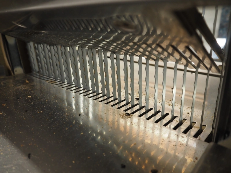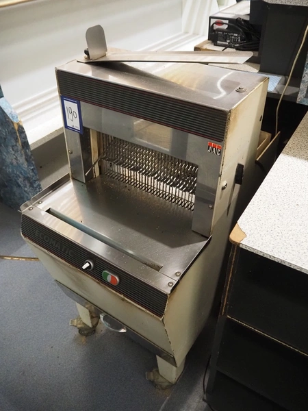 JAC mobile bread slicer, 33 knifes, distance between knifes: 11 mm, total dimensions: 750 mm x 520 mm x 1200 mm.
