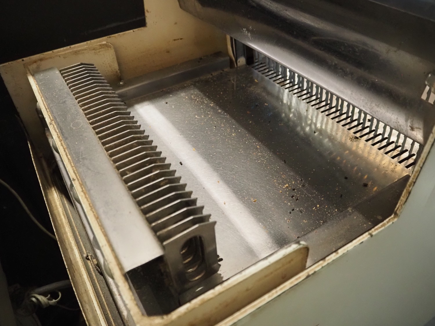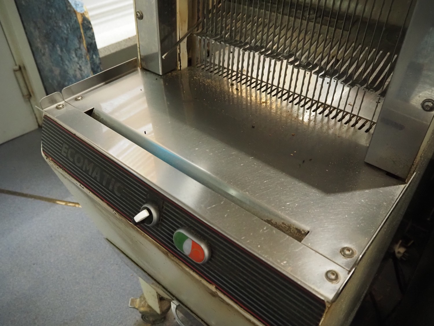 JAC mobile bread slicer, 33 knifes, distance between knifes: 11 mm, total dimensions: 750 mm x 520 mm x 1200 mm.