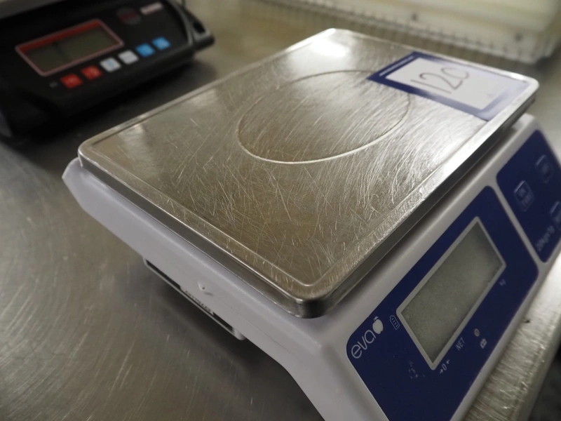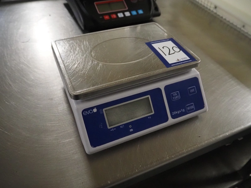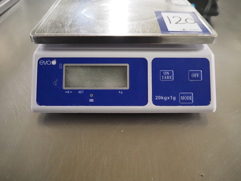EVA weighing scale, serial number: 23110229, 220 V, 50 Hz, maximum: 20 kg, scale dimensions: 280 mm x 200 mm, total dimensions: 300 mm x 290 mm x 110 mm.