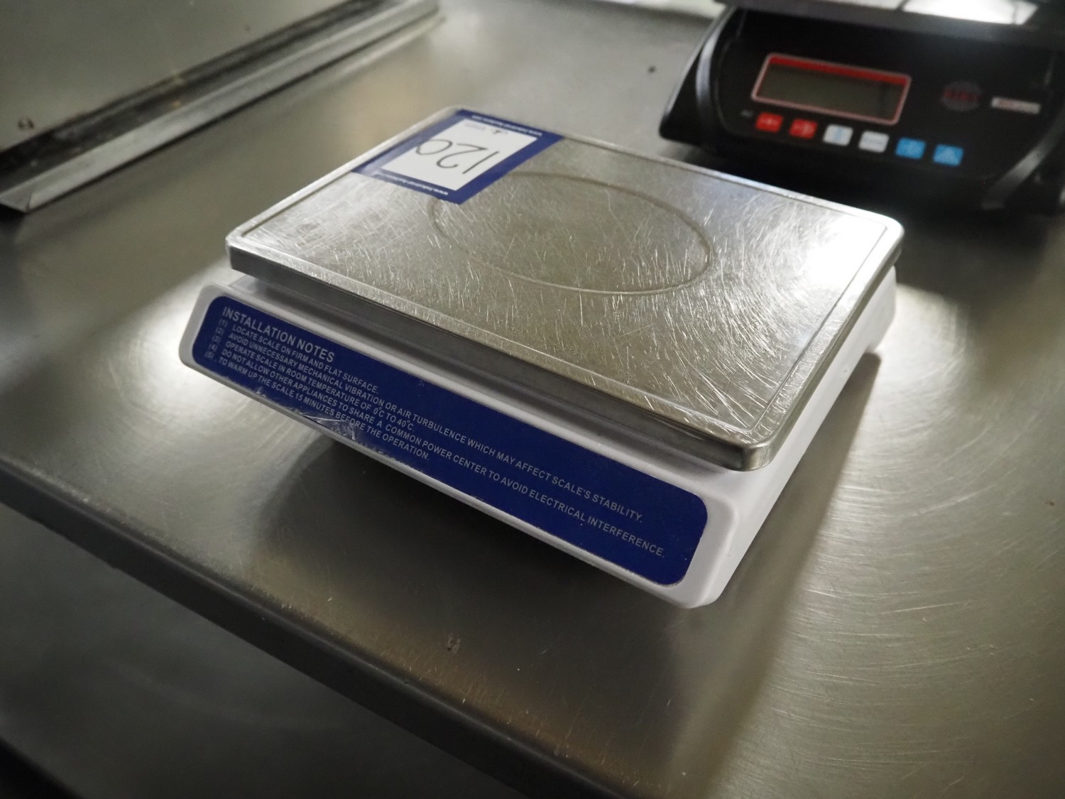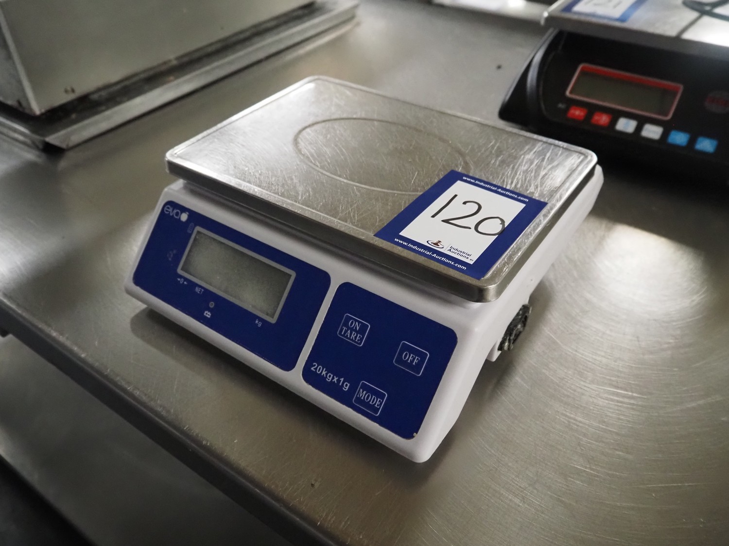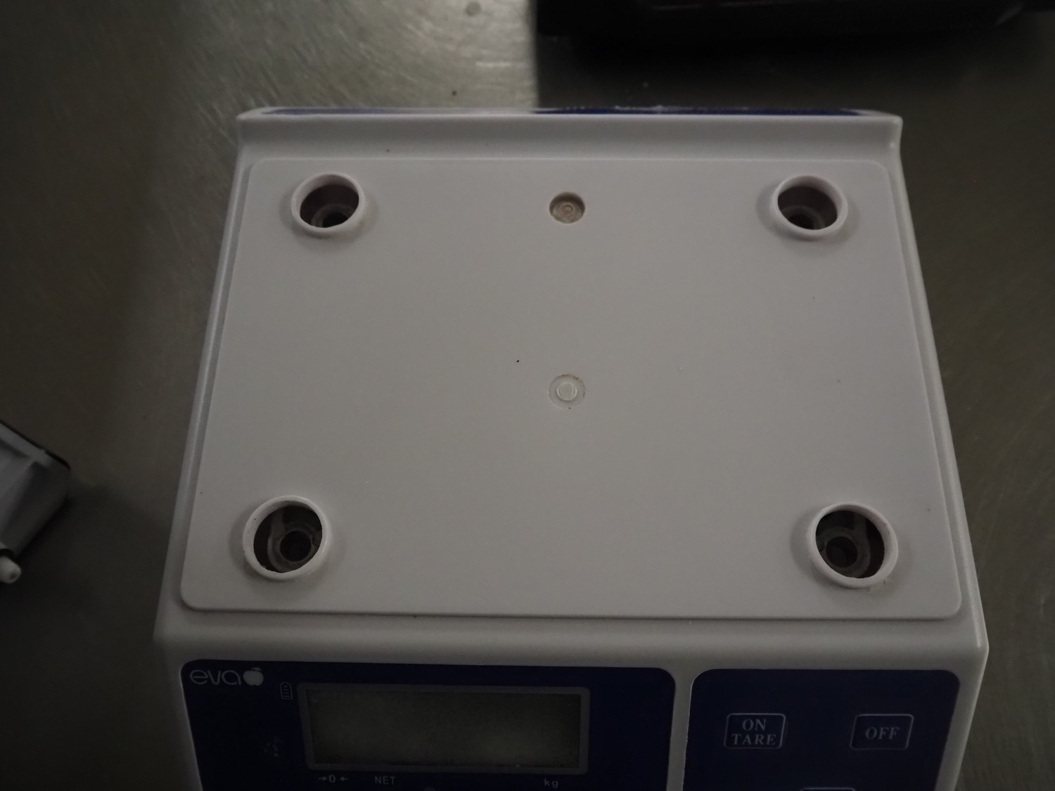 EVA weighing scale, serial number: 23110229, 220 V, 50 Hz, maximum: 20 kg, scale dimensions: 280 mm x 200 mm, total dimensions: 300 mm x 290 mm x 110 mm.