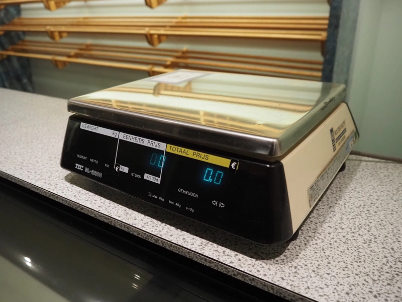 TEC weighing scale, scale dimensions: 300 mm x 250 mm, 3Y001083, 230 V, 50 Hz, 11 Watt, maximum weight: 6 kg, minimum weight: 40 gram, e= 2 gram, total dimensions: 350 mm x 330 mm 120 mm.