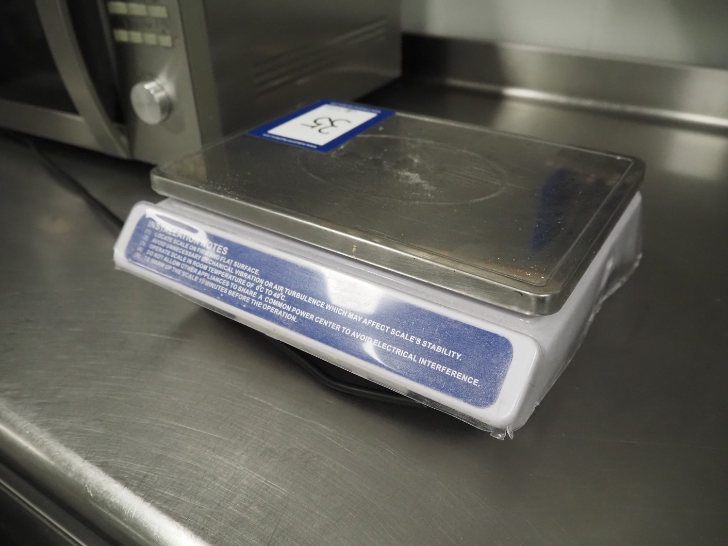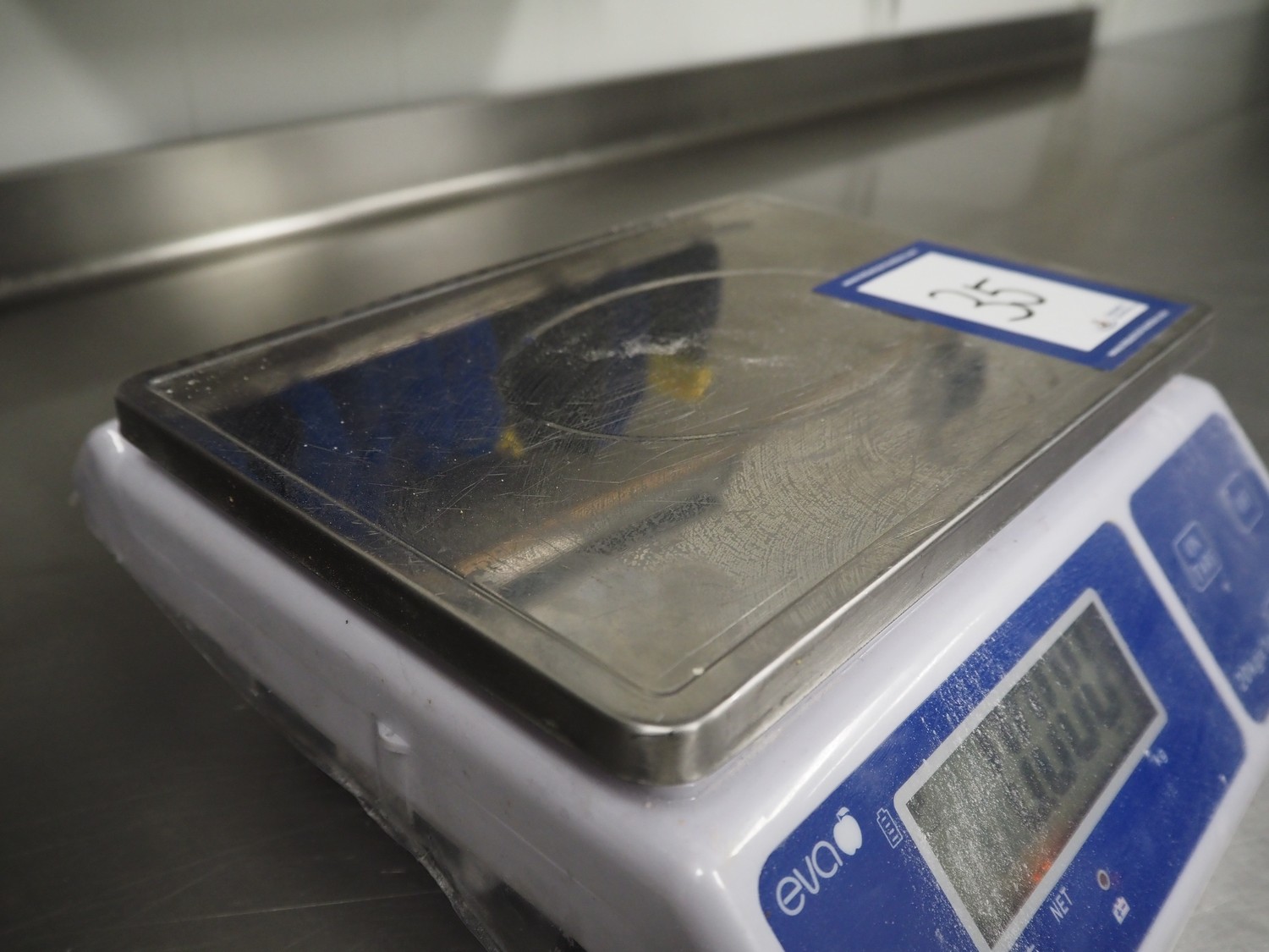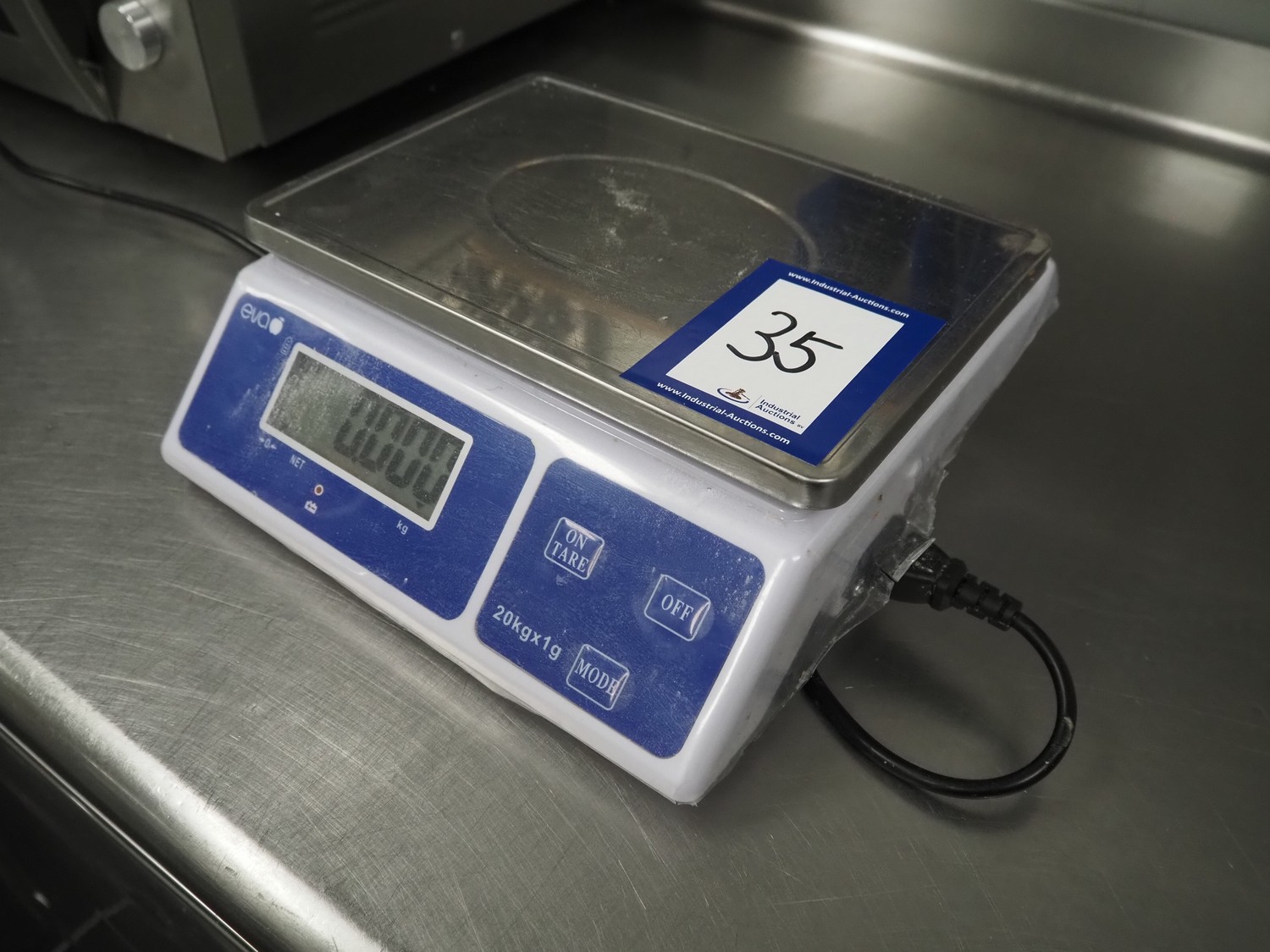 EVA weighing scale, serial number: 24012729, 220 V, 50 Hz, maximum: 20 kg, scale dimensions: 280 mm x 200 mm, total dimensions: 300 mm x 280 mm x 120 mm.