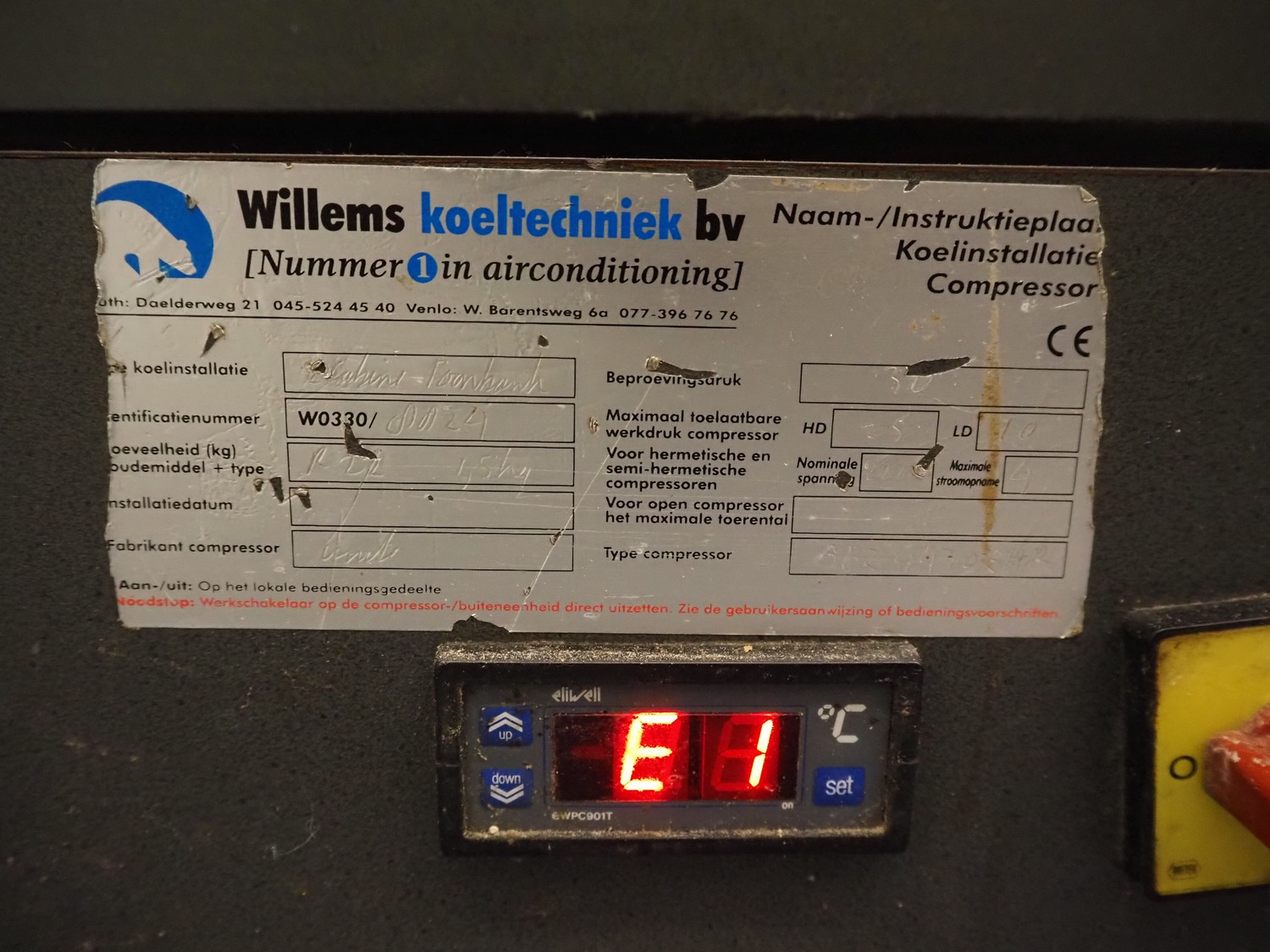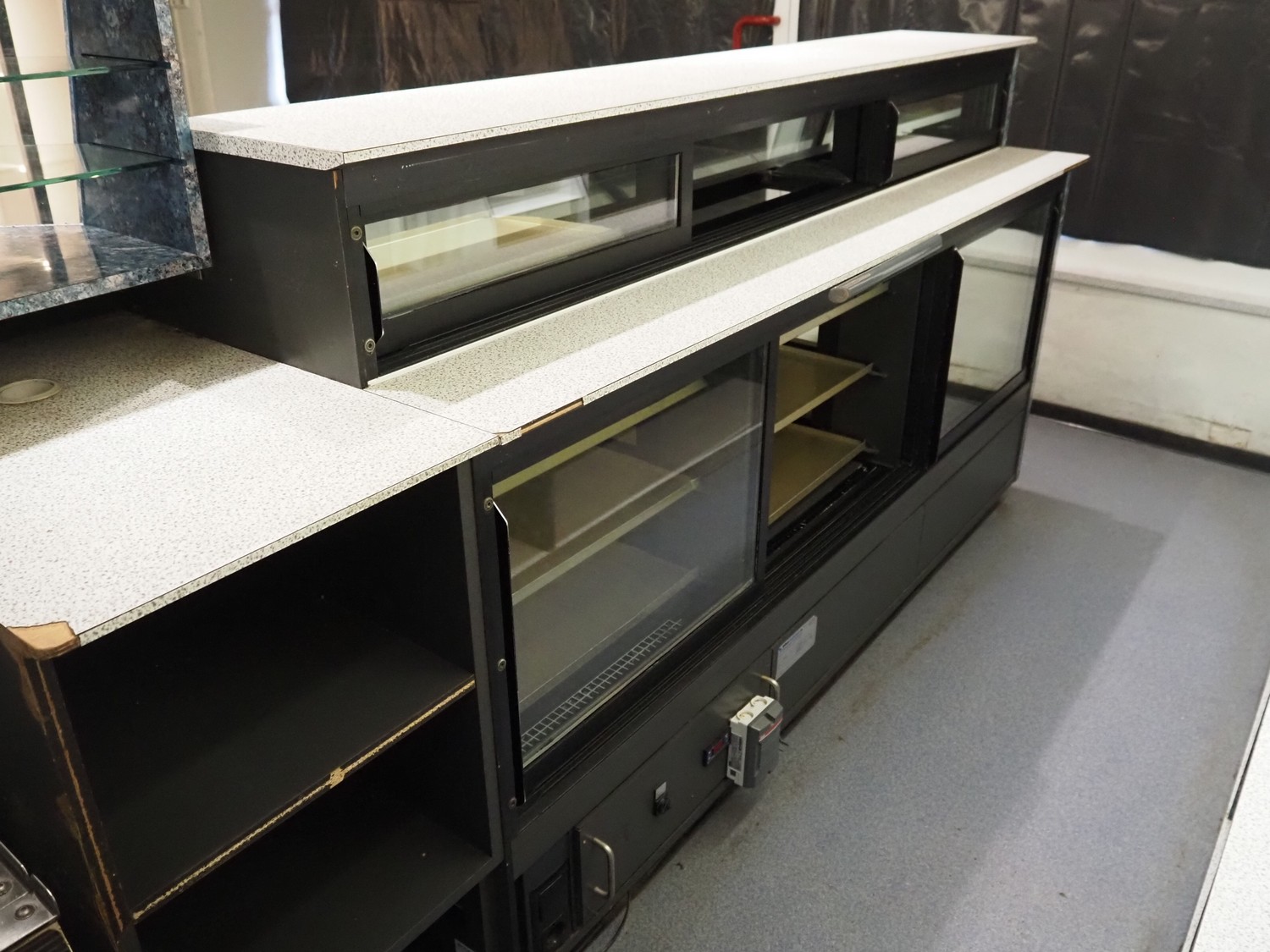 2 refrigerated showcases, refrigerant: R22, dimensions: (1x) 3400 mm x 1000 mm x 1200 mm, (1x) 2050 mm x 1000 mm x 1200 mm.