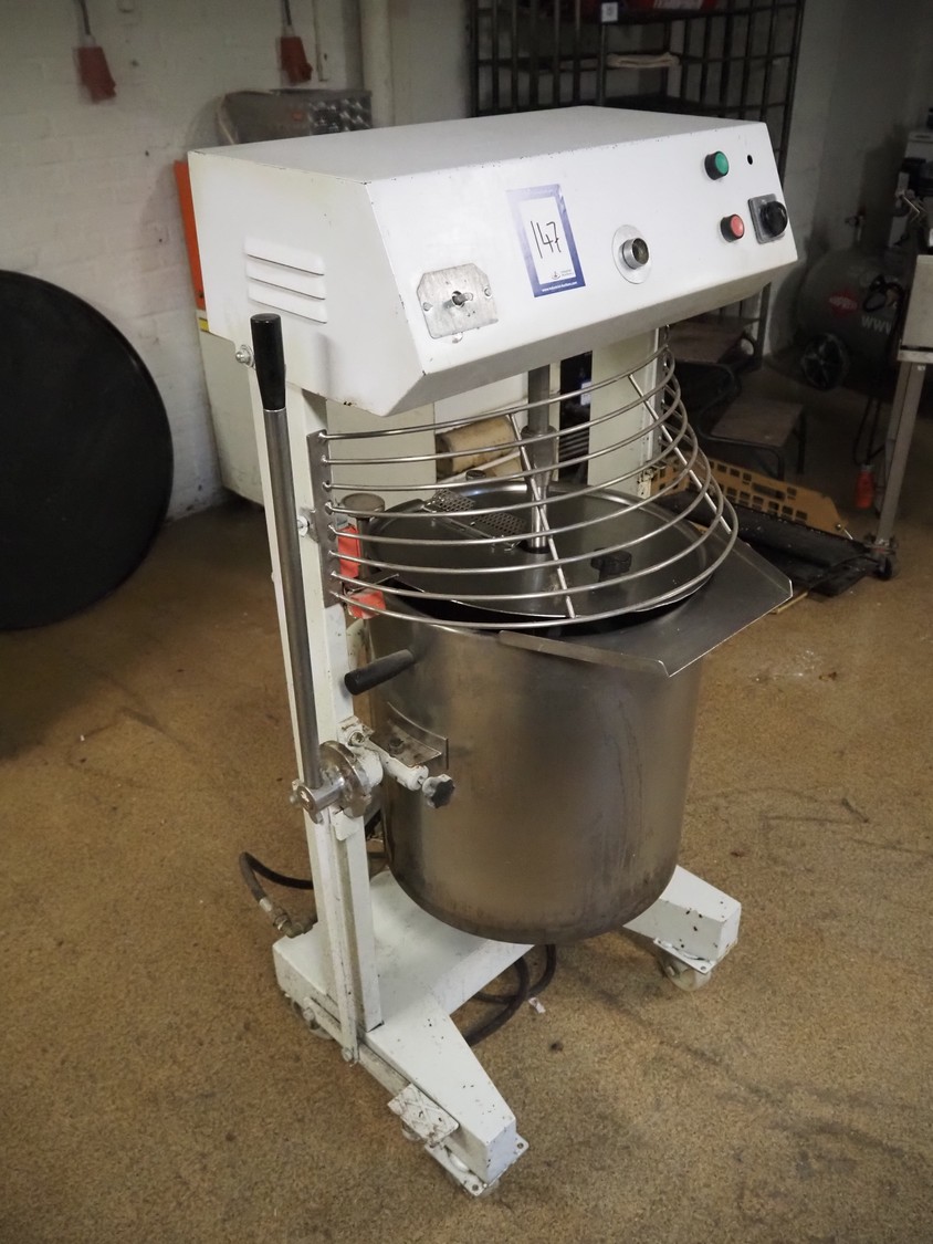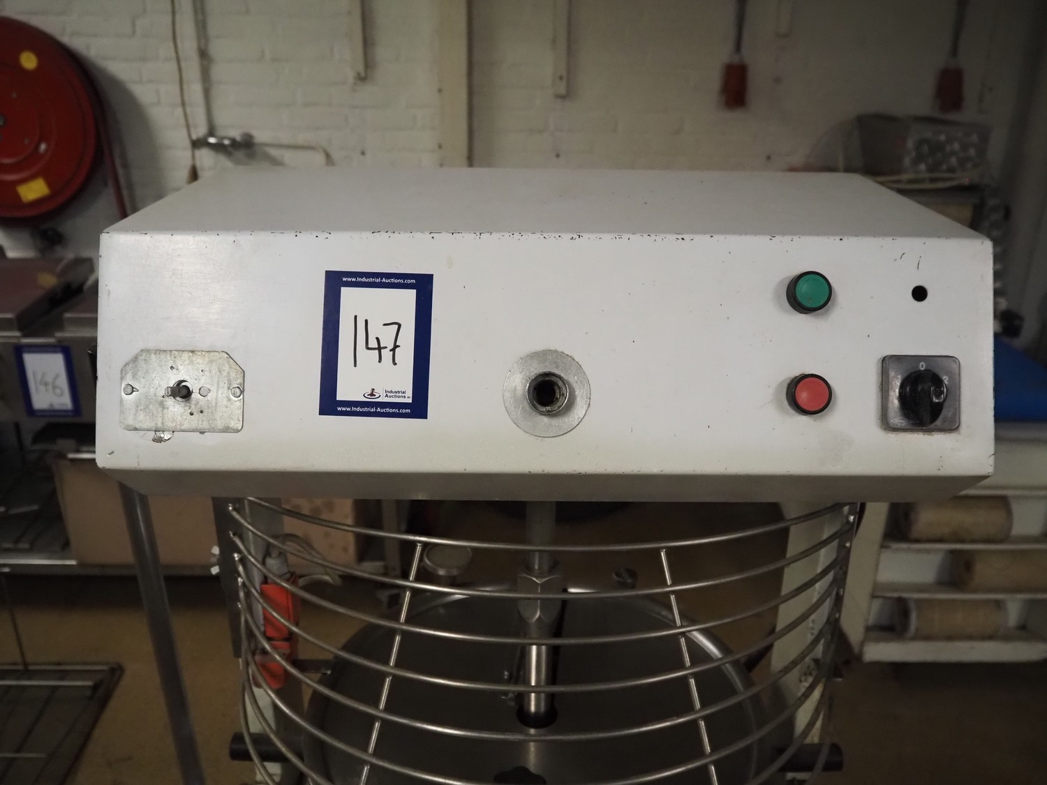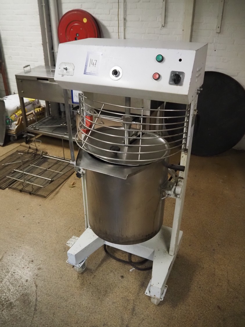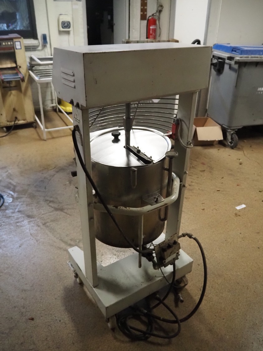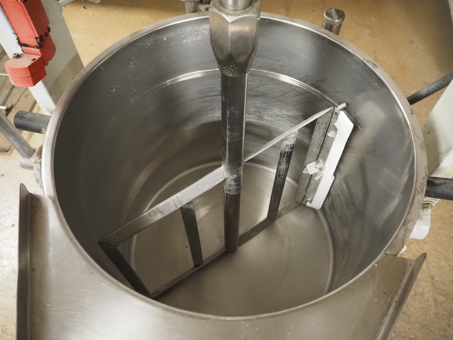 DE DANIELI s.n.c. mobile mixing and cooking machine, type: C502G, serial number: 2201, 380 V, 3 Ph, 50 Hz, 0.4 kW, s/s tub, volume: 50 liter, dimensions: Ø 420 mm x 400 mm, total dimensions: 700 mm x 600 mm x 1420 mm.