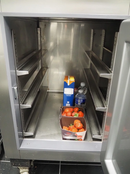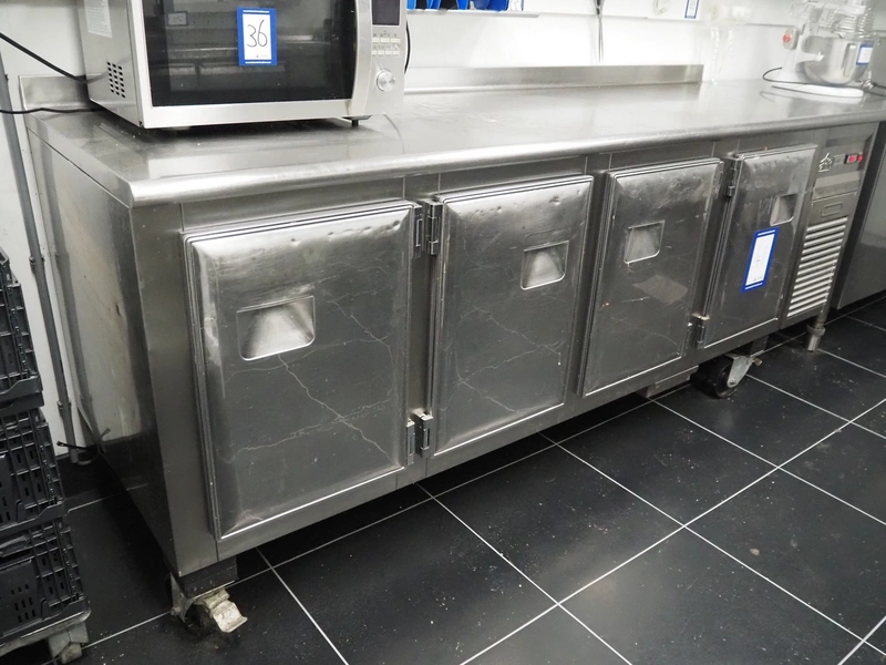 Koma mobile cooling cabinet, model: KWB-4, 4 doors, plate dimensions: 620 mm x 400 mm, total dimensions: 2500 mm x 800 mm x 1100 mm. Without content.