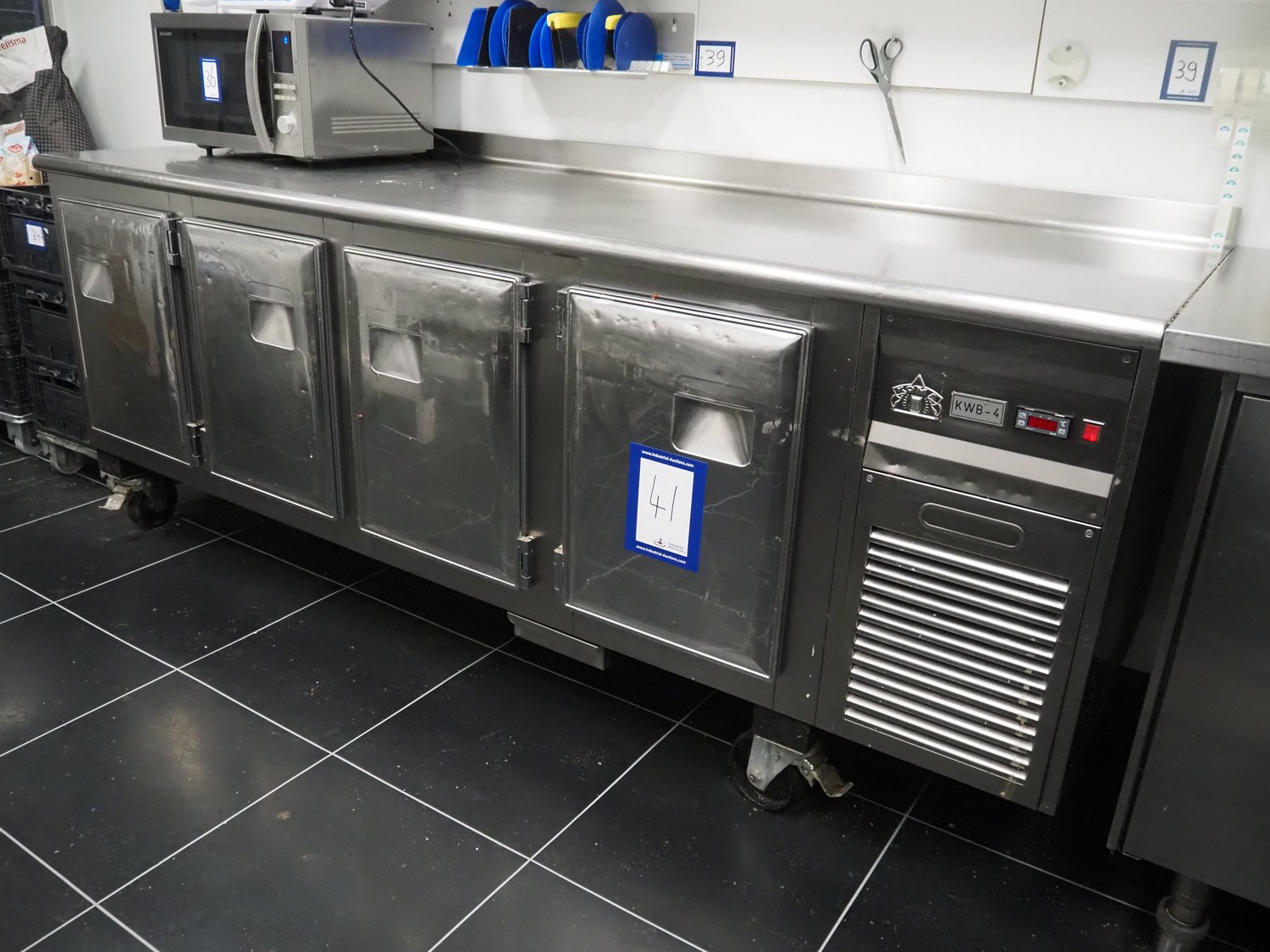 Koma mobile cooling cabinet, model: KWB-4, 4 doors, plate dimensions: 620 mm x 400 mm, total dimensions: 2500 mm x 800 mm x 1100 mm. Without content.