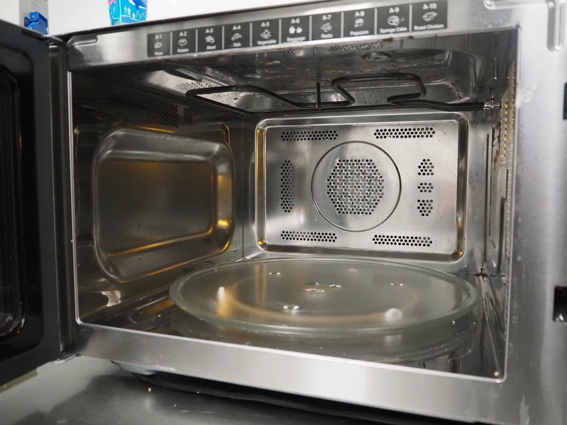 Sharp microwave oven, model: R982STWE, serial number: 181001352310120240, 230/240 V, 50 Hz, microwave 1000 W, grill 1400 W, dimensions: 560 mm x 480 mm x 330 mm.