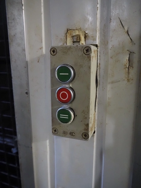 Goods elevator, maximum: 700 kg, inside dimensions: 1450 mm x 1020 mm x 2160 mm, lifting height: 2880 mm, total dimensions: 1550 mm x 1300 mm x 6000 mm.