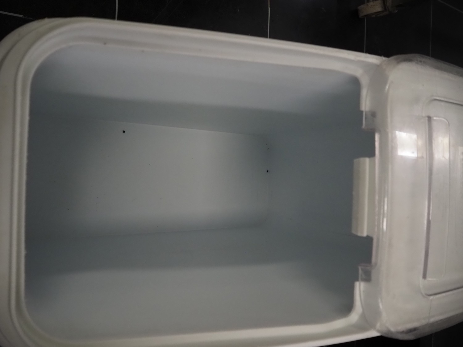 Rubbermaid plastic tub, dimensions: 750 mm x 320 mm x 730 mm.