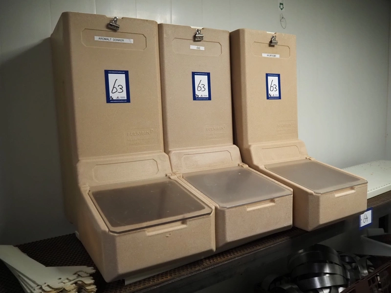 3 Bulkibin containers, dimensions: (3x) 640 mm x 300 mm x 680 mm.