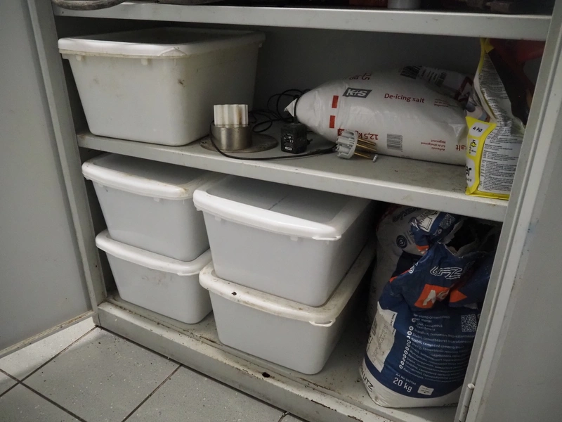 Steel cabinet, dimensions: 1000 mm x 450 mm x 1950 mm. Including content.