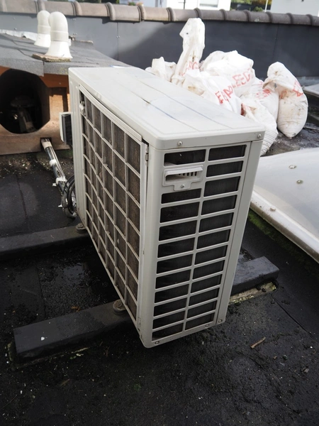 Mitsubishi outside unit for airconditioning, model: SCM45ZD-S, serial number: 553402382, 220/230/240 V, 50 Hz, 4.5 kW, weight: 44 kg, refrigerant: R410A, dimensions: 900 mm x 320 mm x 650 mm.
