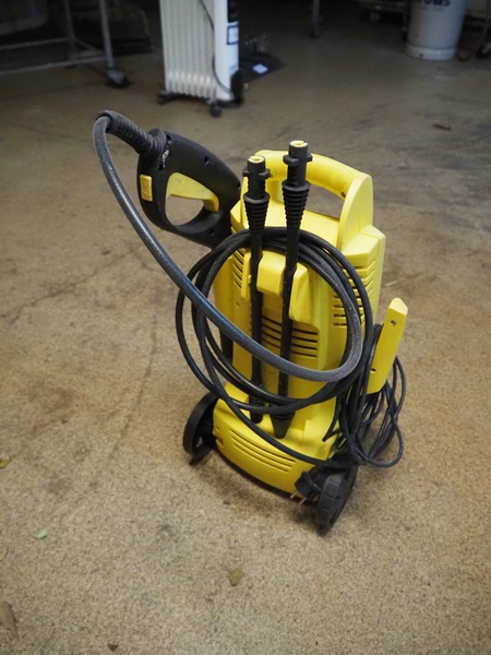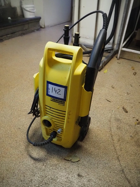 Kärcher high pressure cleaner, model: K2.36M, serial number: 068759, 220/240 V, 50/60 Hz, 6 A, T in maximum: = 40°C, dimensions: 250 mm x 320 mm x 600 mm.