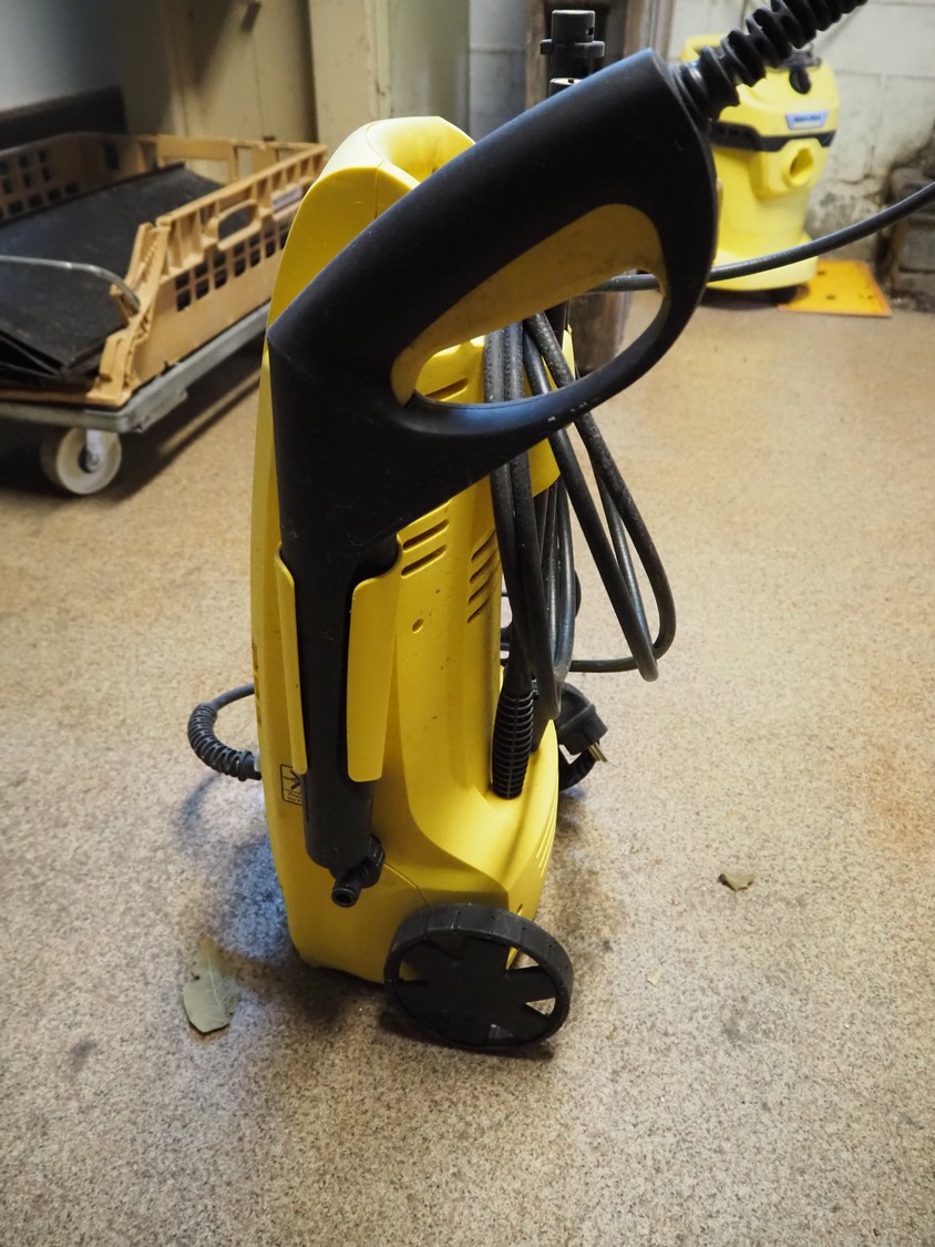 Kärcher high pressure cleaner, model: K2.36M, serial number: 068759, 220/240 V, 50/60 Hz, 6 A, T in maximum: = 40°C, dimensions: 250 mm x 320 mm x 600 mm.