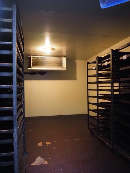 Cooling cell with Helpman evaporator, inside dimensions: 3600 mm x 5100 mm x 2400 mm. Without trolleys.